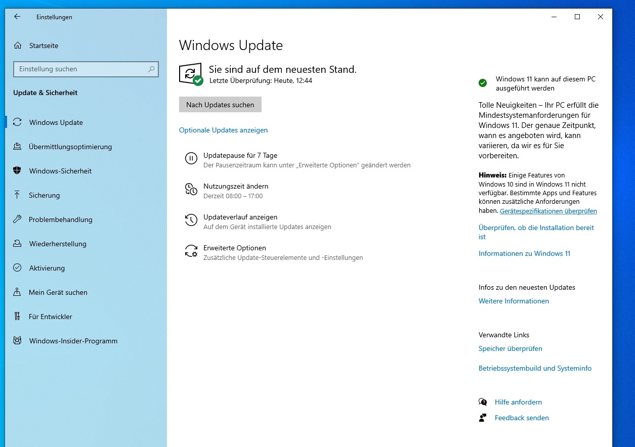 Windows 10 64Bit Pro ist auf dem neusten Stand