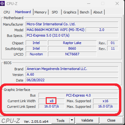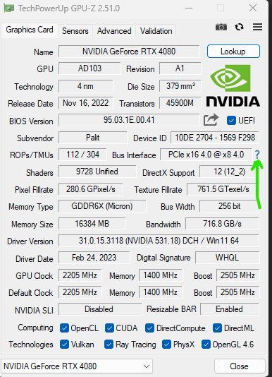 habe heute durch Zufall festgestellt das meine Grafikkarte (4080) nur mit PCIe 4.0 x8 anstatt x16 läuft.