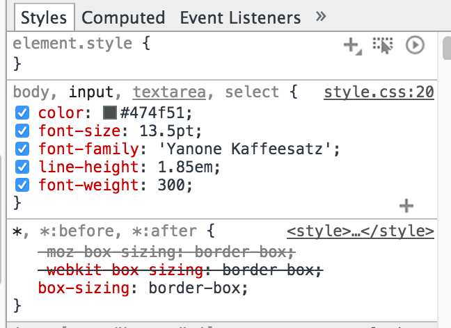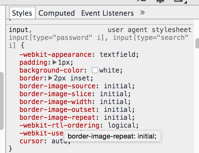 Im Inspektor zeigt mir FF und Chrome das gleiche an für die Basiswerte wie auf dem Screenshot zu sehen, wobei ich bei FF keinen Eintrag zum Background finden kann.
