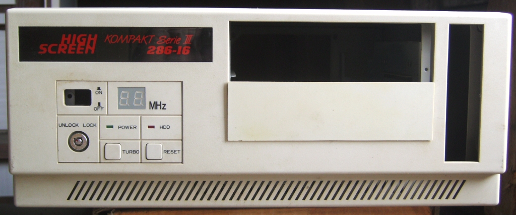 Mein erster PC war ein AMD 386 DX 33 im Colani Design. Weiß aber um verrecken nicht mehr alle Daten. Mit Floppy, kleiner HDD und Grafik.
