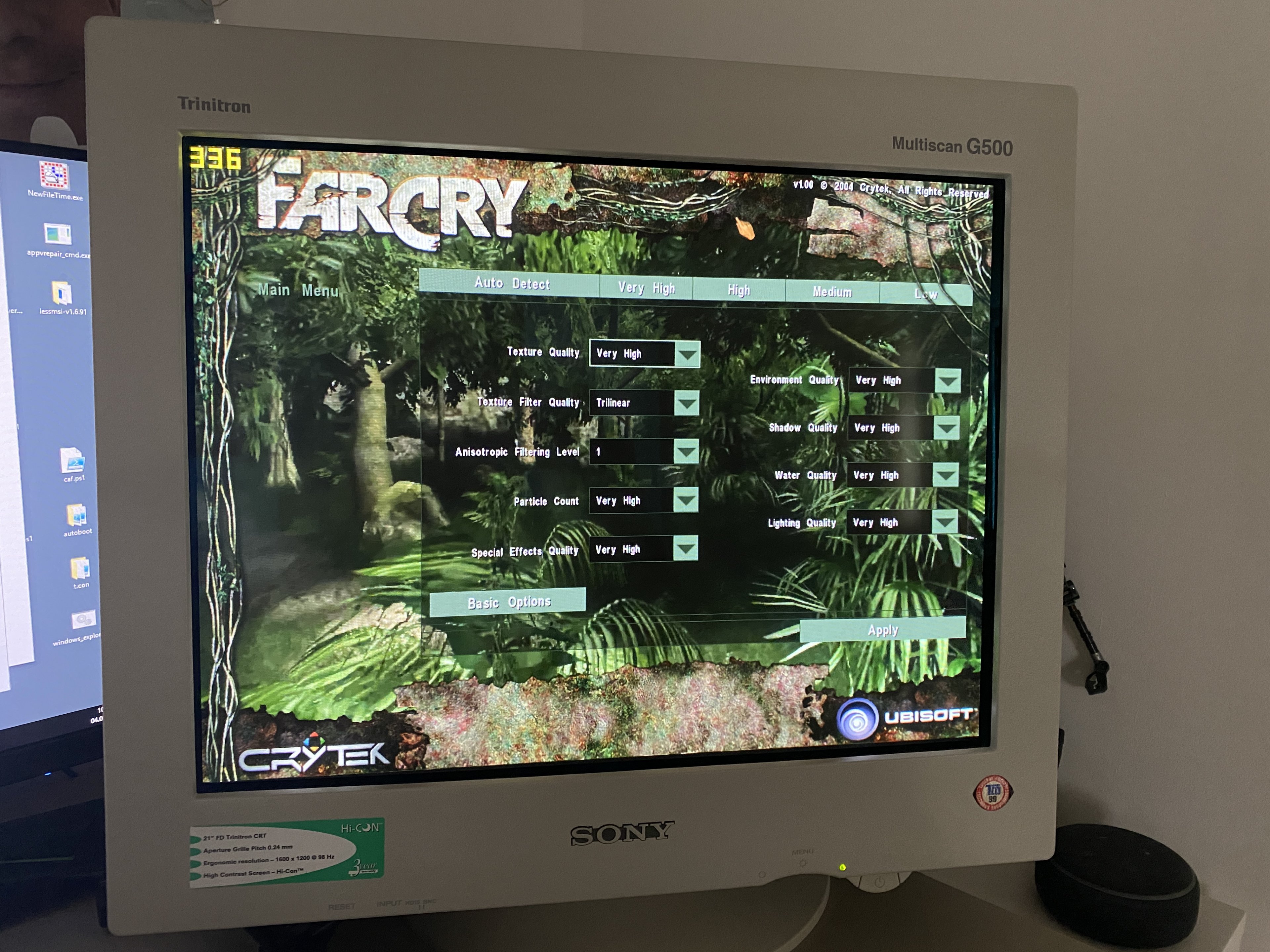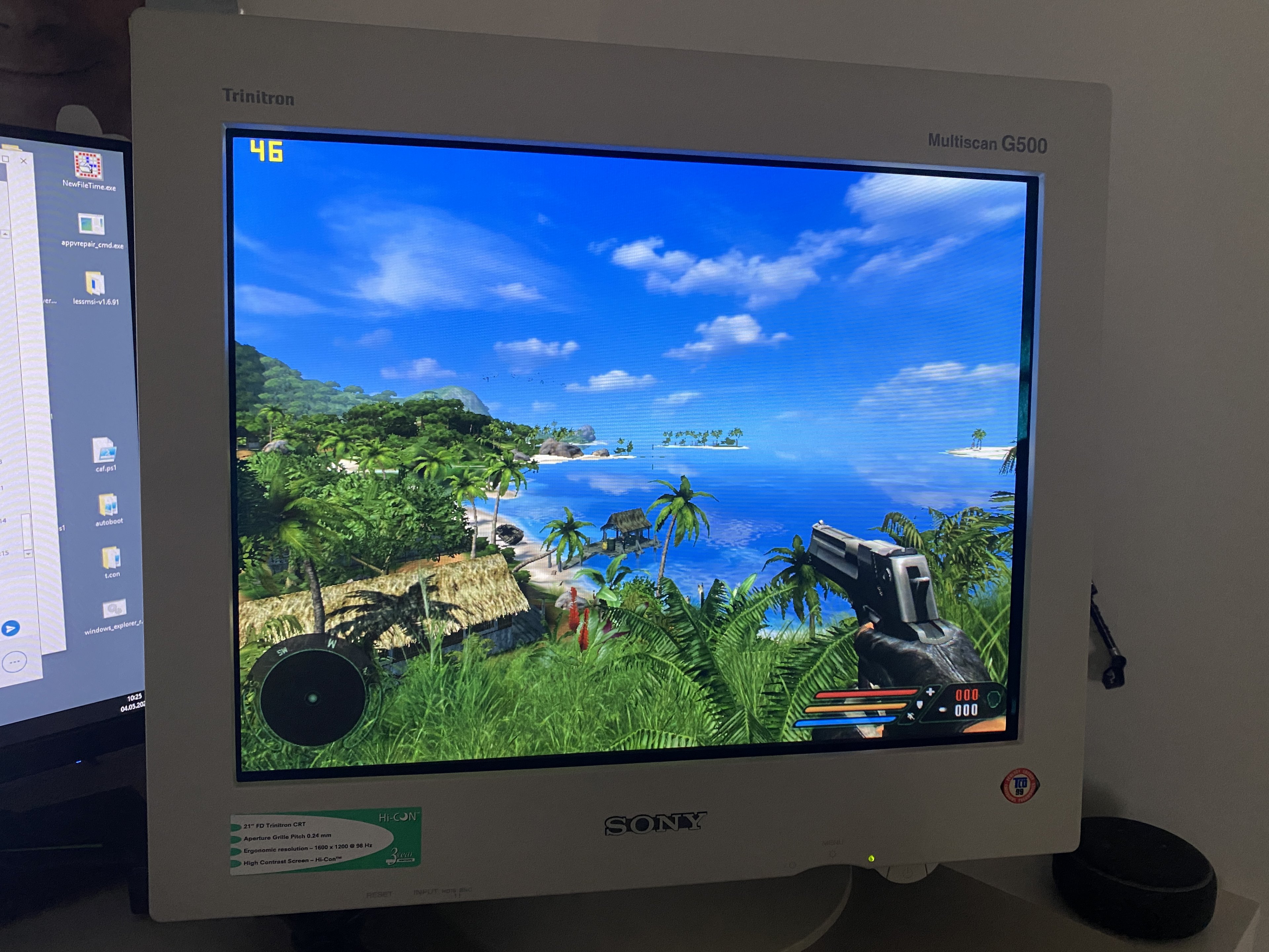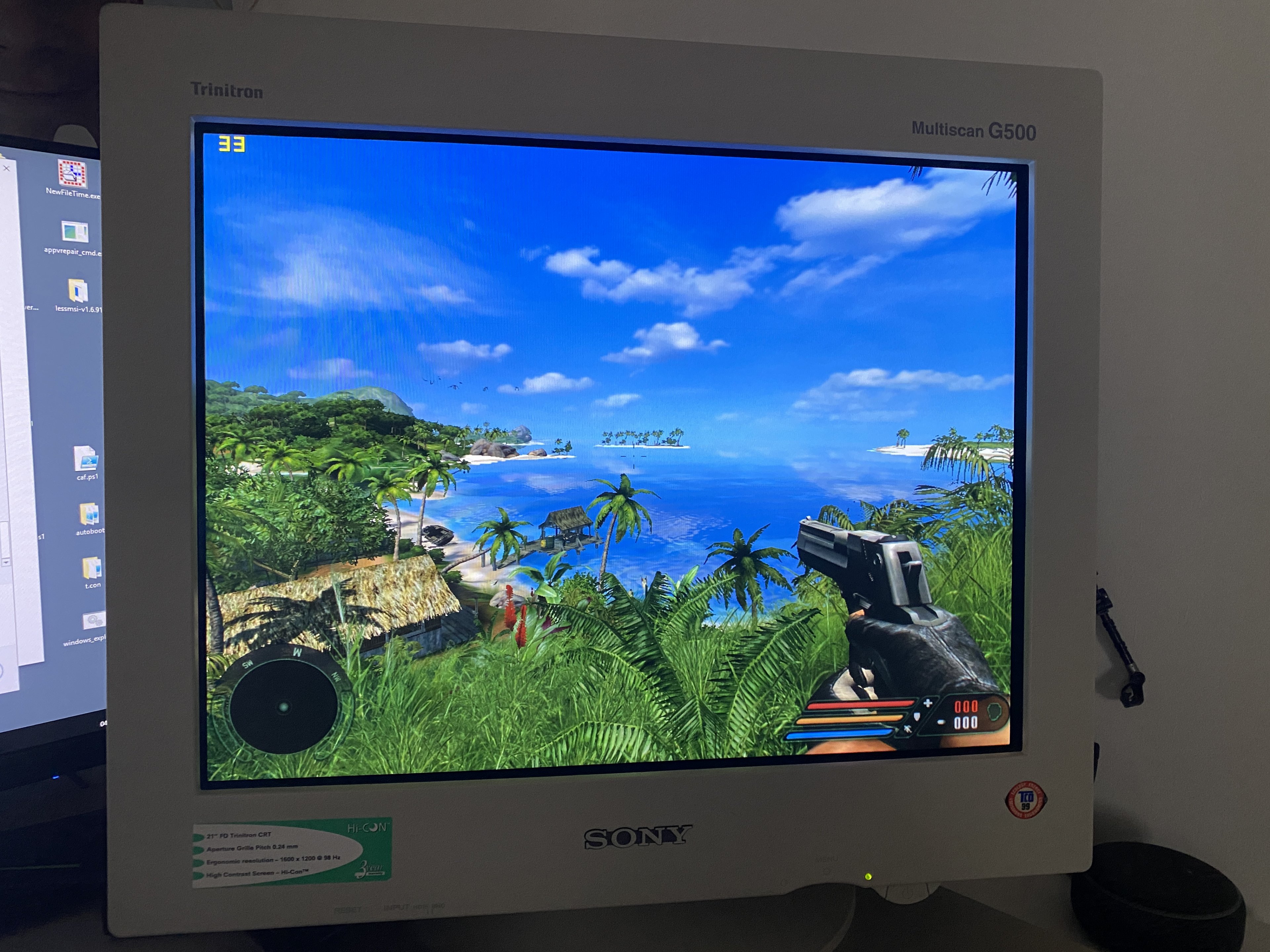 Läuft besser, als ich das in Erinnerung hatte. Im Anhang mal 3 Fotos von den Settings und 1x 1024x768 und einmal 1280x1024. Sieht auf Röhre viel besser aus als auf LCD (imho).