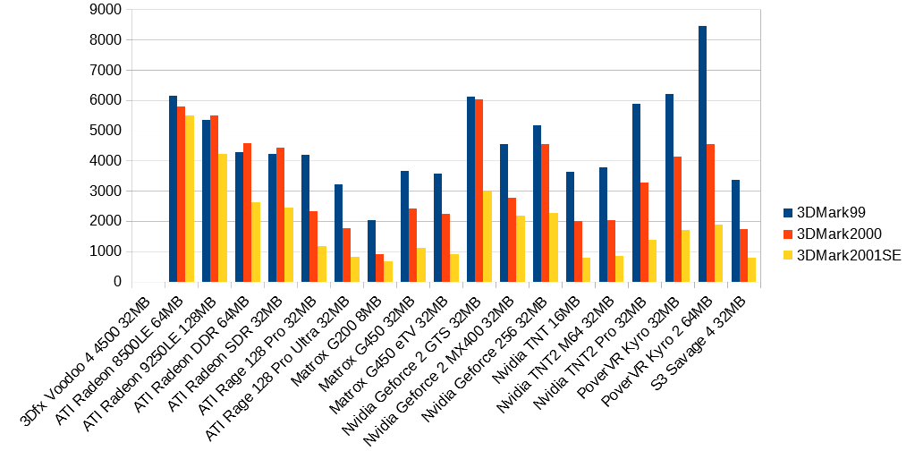 3dfx hatte da schon nichts mehr zu melden, sie waren teurer, langsamer und im eigentlichen Sinne nicht mal Grafikkarten, sondern nur Addon Boards. Erst die Voodoo 3 änderte das, aber da war der Zug schon abgefahren. 1 Jahr später gingen die Lichter aus. Von der geringeren Farbtiefe mit 16 Bit zu 32 Bit der Riva und Rage rede ich erst gar nicht.butch1111 schrieb:....Zwischen 3dfx, ATi und Nvidia entwickelte sich ein spannendes Duell um den....