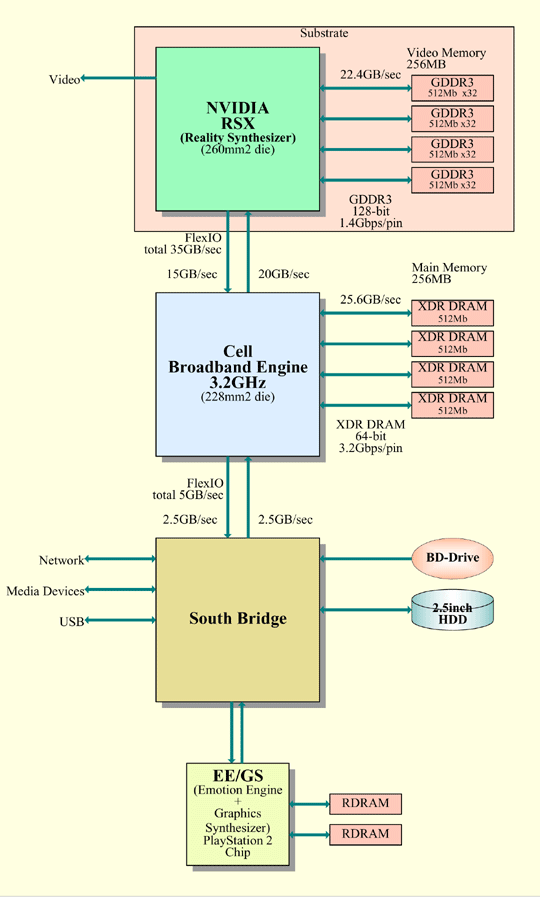 Dies hätte Sony auch fast das Genick gebrochen, weswegen es auch bei späteren Revisionen zu Kürzungen dieser Features gekommen ist. Schön veranschaulichen lässt sich dies, beim Vergleich der Blockdiagramme der Release-Modelle beider Konsolen: