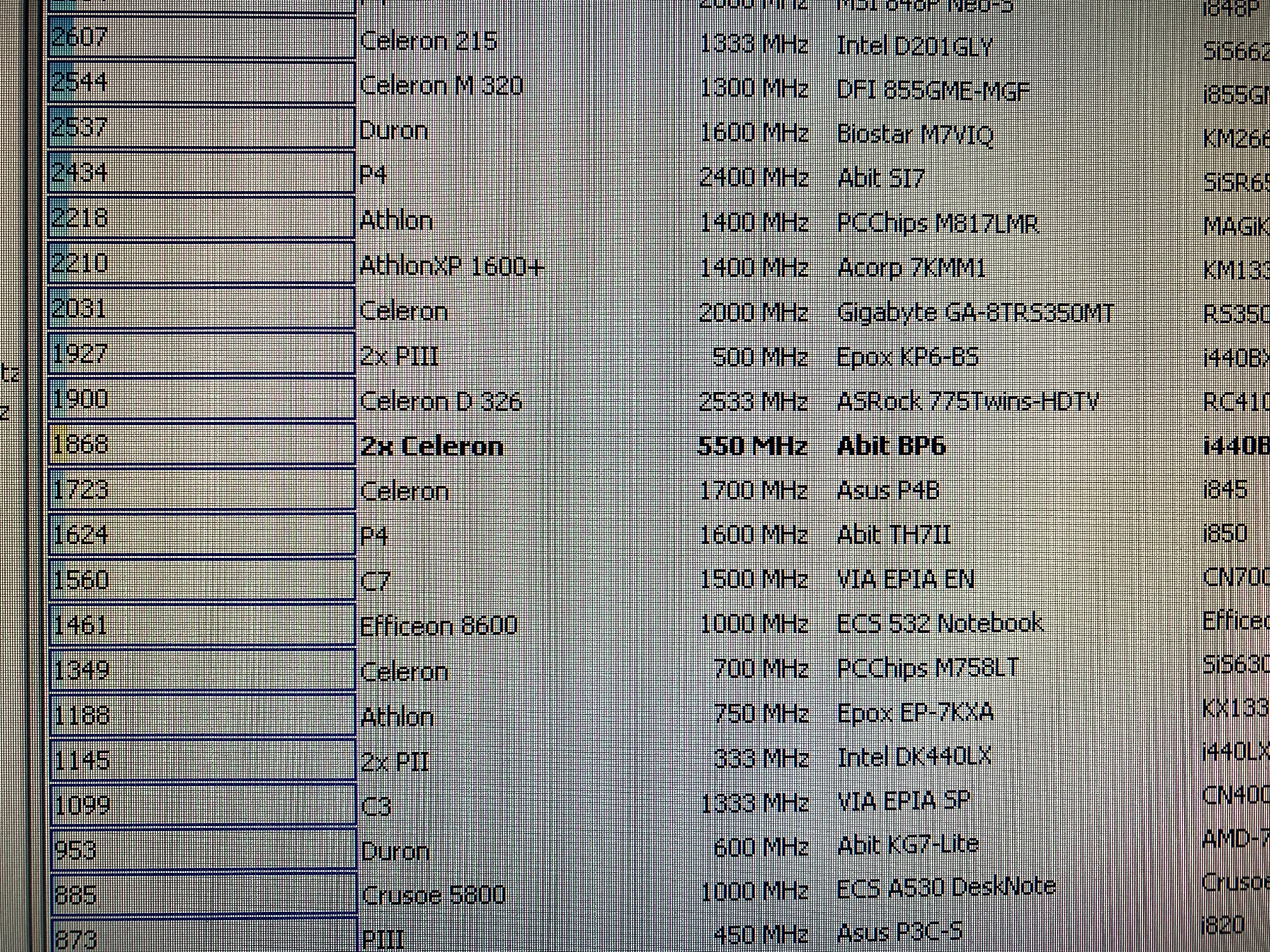 Hatte von Abit damals das BX6 Rev. 2.0 mit einem 300er Celeron @450, erst mit einem K7 700 hat sich der Umstieg gelohnt.