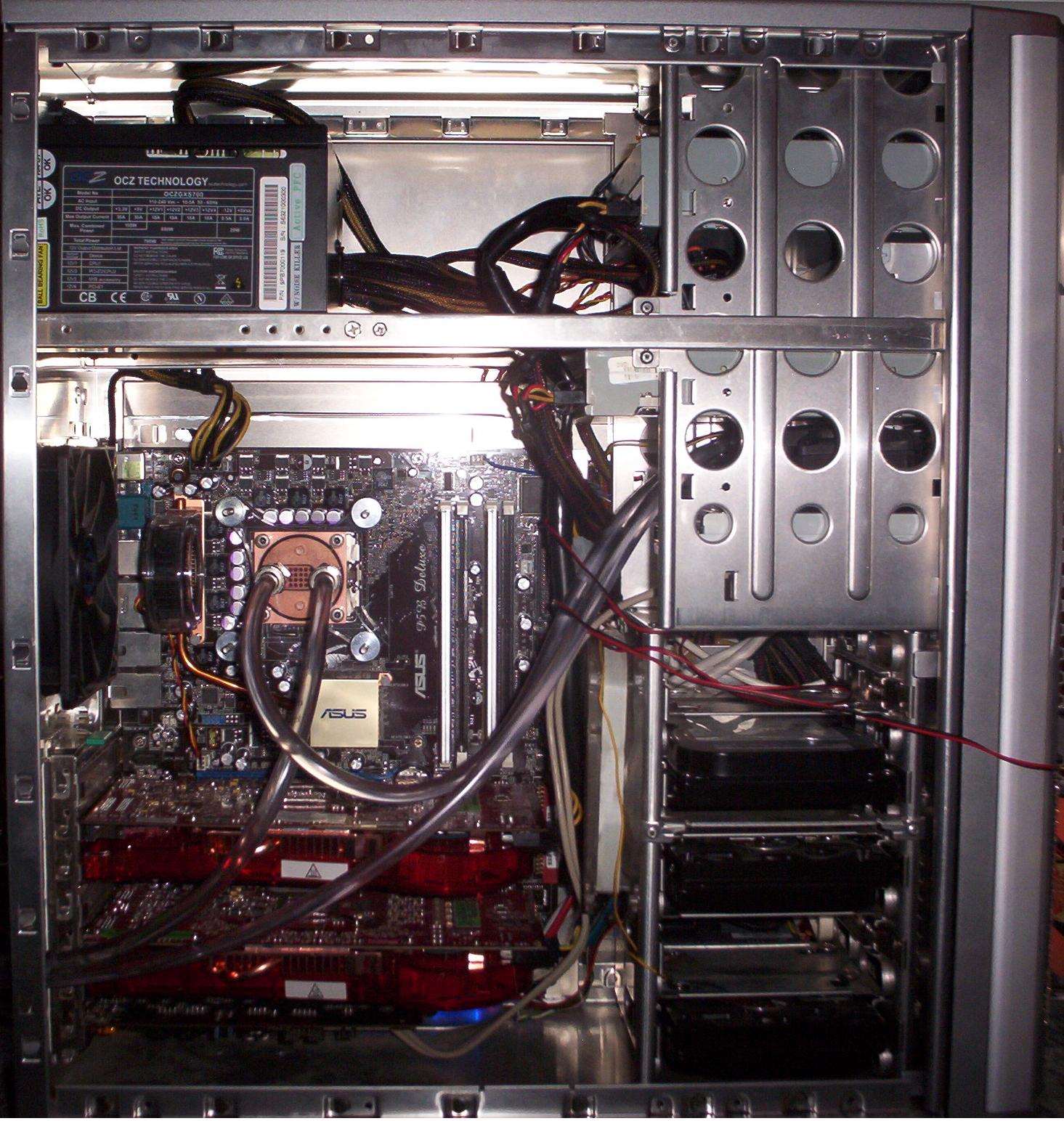 Mainboard war ein Asus P5W DH Deluxe. Grafikkarte war eine 8800 GTX, war ein gutes System aber keine Ahnung wie viel RAM ich da verbaut hatte, es war auf jeden Fall RAM vom Hersteller Geil.