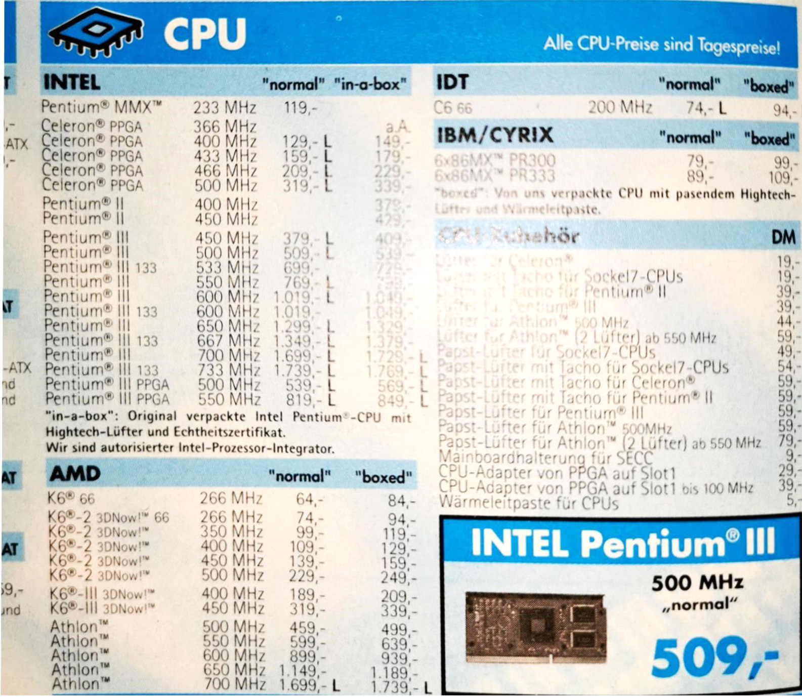 Das dürften dann aber noch Deutsche Mark gewesen sein, oder hast Du umgerechnet?zonediver schrieb:Intel PIII-550E ... € 347,30 - witzig: TDP 14,5W👍