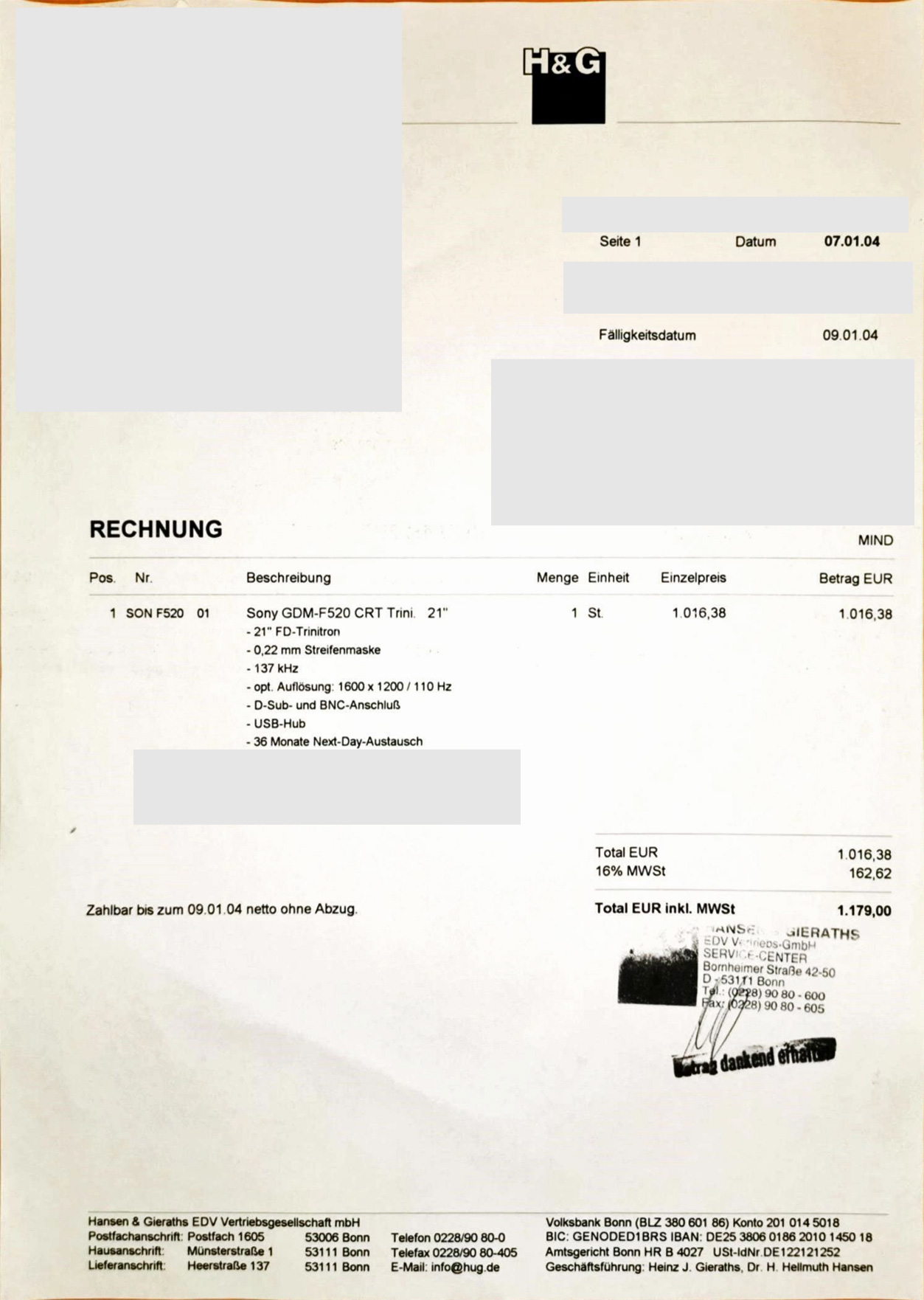 Mittels HF-Modulator konnte dann auch ein billiger Haushaltsfernseher über Antennengang angeschlossen werden.