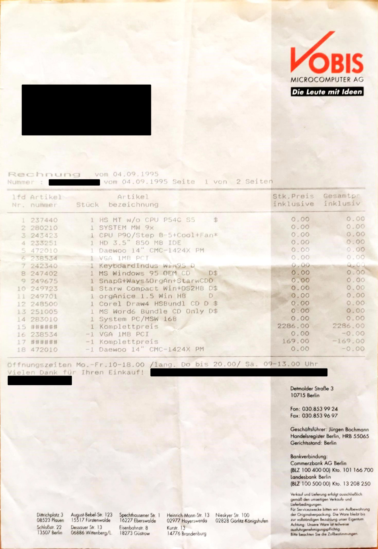 Hat LPT-Port (an Adresse $3BC) für Drucker.