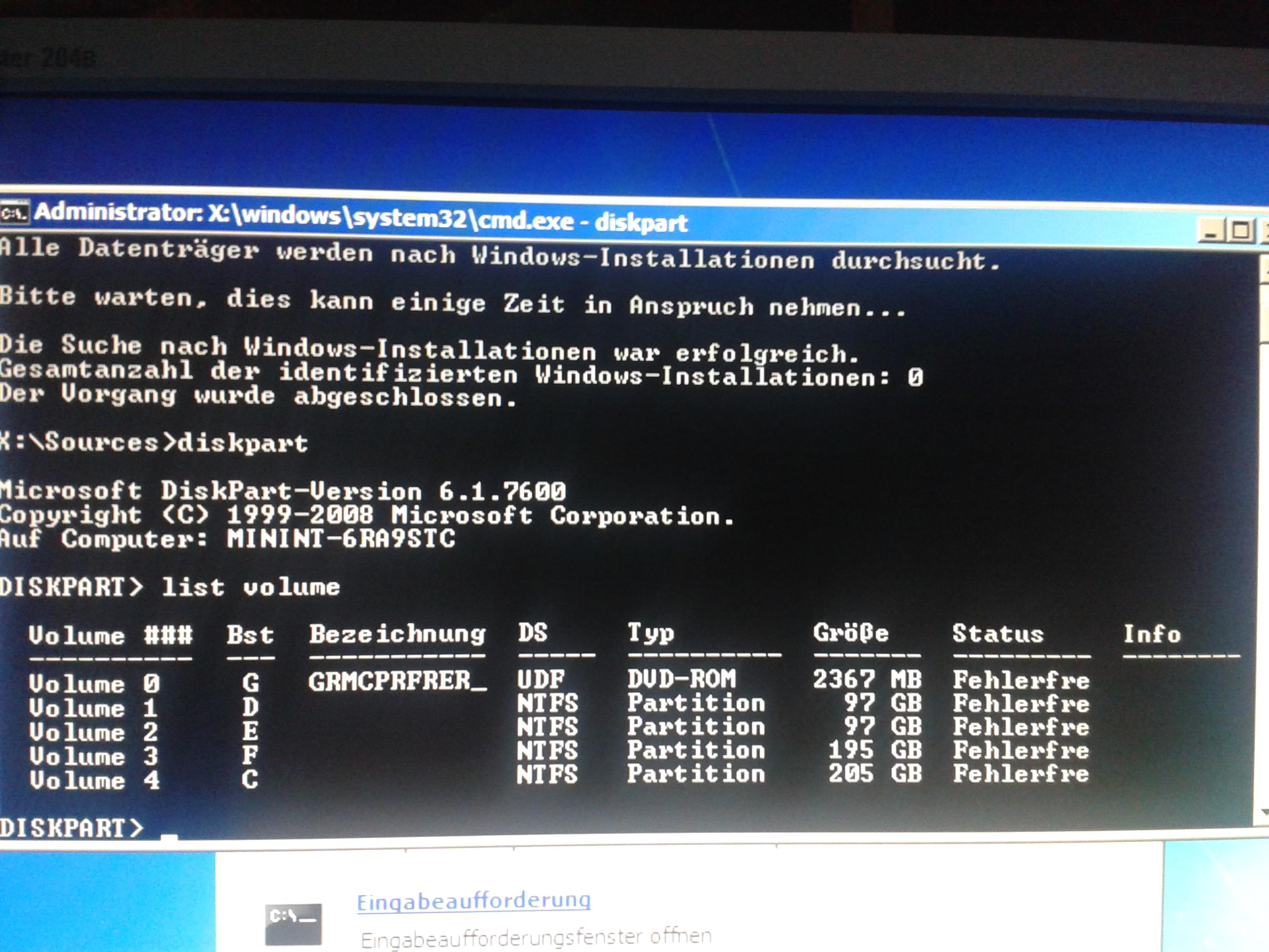 ich habe einen Computer bekommen der 4 Partitionen hatte. Jedoch waren alle Partitionen gelöscht. Mit der Linux CD habe ich es geschafft 3 Partitionen wiederherzustellen. Dabei ist auch die Partition C vorhanden.