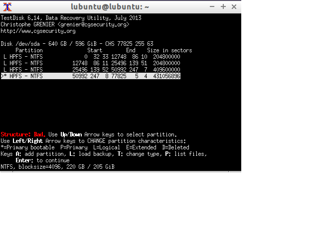 Und das andere Problem ist dass eine Partition wenn ich ein "L" setzte als Bad Structure angezeigt wird. Da weiß ich nicht wie ich das wegbekomme.