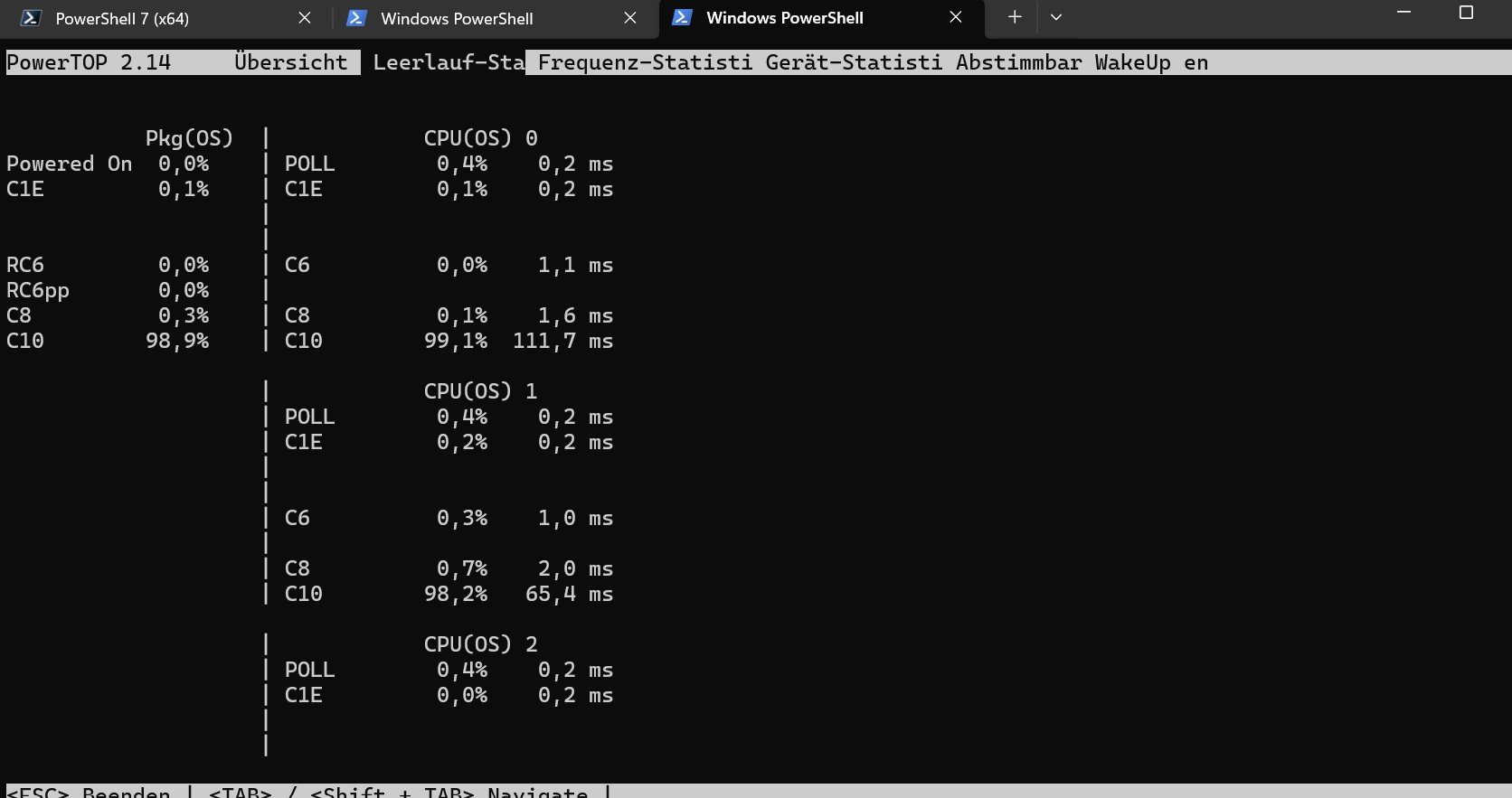 installiert. Wie würdet ihr folg. Screenshot von Powertop interpretieren. Die C-States sehen doch etwas merkwürdig aus, oder?