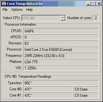 Core Temp misst ziemlich genau, da die Core Duos den Fühler im Kern haben! Daher Coretemp!;)