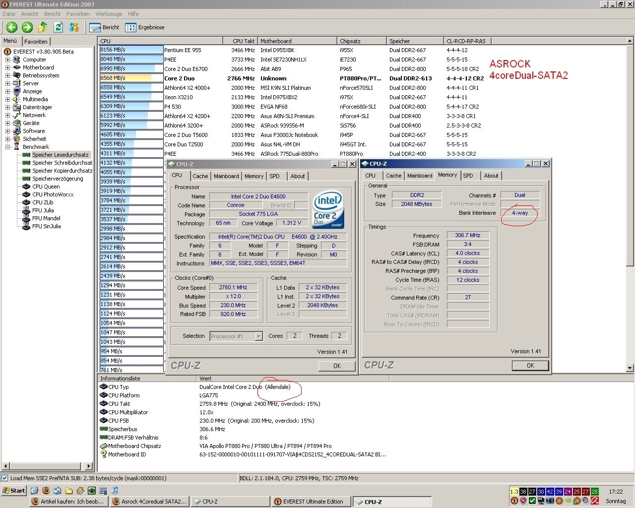 Jedoch wird der Prozesser als Conroe-2M erkannt und nicht als Allendale, wie beim Asrock.(sh. Screenshots). Warum? keinen Plan.