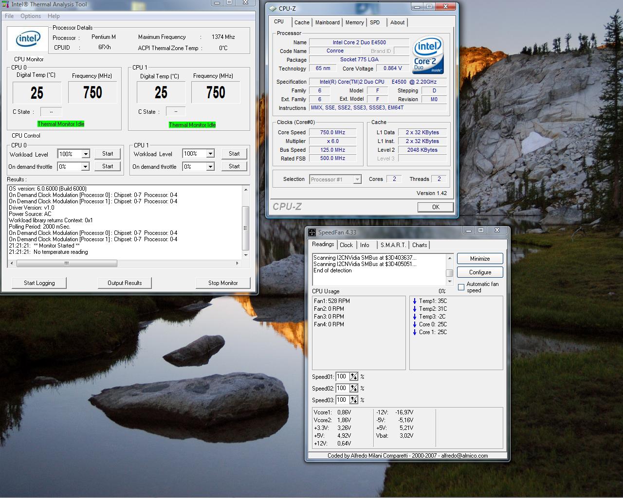 bei mir läuft grade das etwas andere Projekt. Die Taktfrequenz von meinem E4500 hab ich mit 2,93 Ghz (11*266) bei mir vorerst festgesetzt - was bei dem E4500 mit Standard Vcore ja absolut kein Problem darstellt.