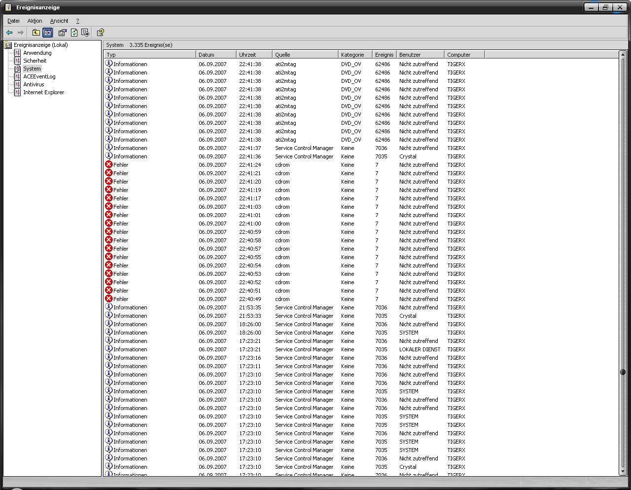 Kann man evnlt. was von der System Ereignissanzeige irgendwelche Informationen gebrauchen, mir kommt es etwas schräg vor dass da soviele Fehler und Warnungen sind