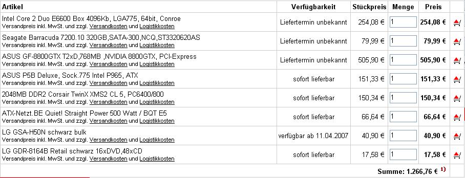 Ich habe vor mir einen neuen Gming Pc zu baun hab aber von der neusten Hardware keinen plan hätte nur gerne nen c2d mit min.2 Gb Ram, ~250 gb Platte,eine od 2 gute GPU´s und nen asureichenden lüfter für CPU der kann von mir aus 100db haben da ich mit headset spiele. Da ich nicht gerade zu den gestopften unter uns gehöre hätte ich so 1800 euro auf meinem konto .
