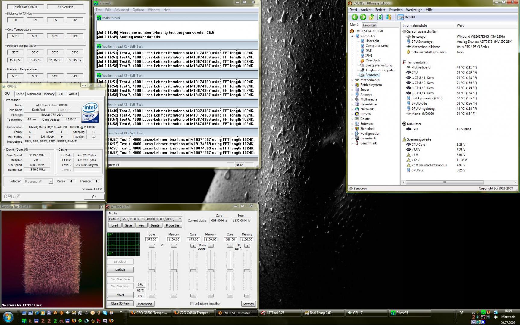 Bislang konnte ich schlicht mit der Erhöhung des FSB übertakten und musste nichts an der Spannung anpassen.