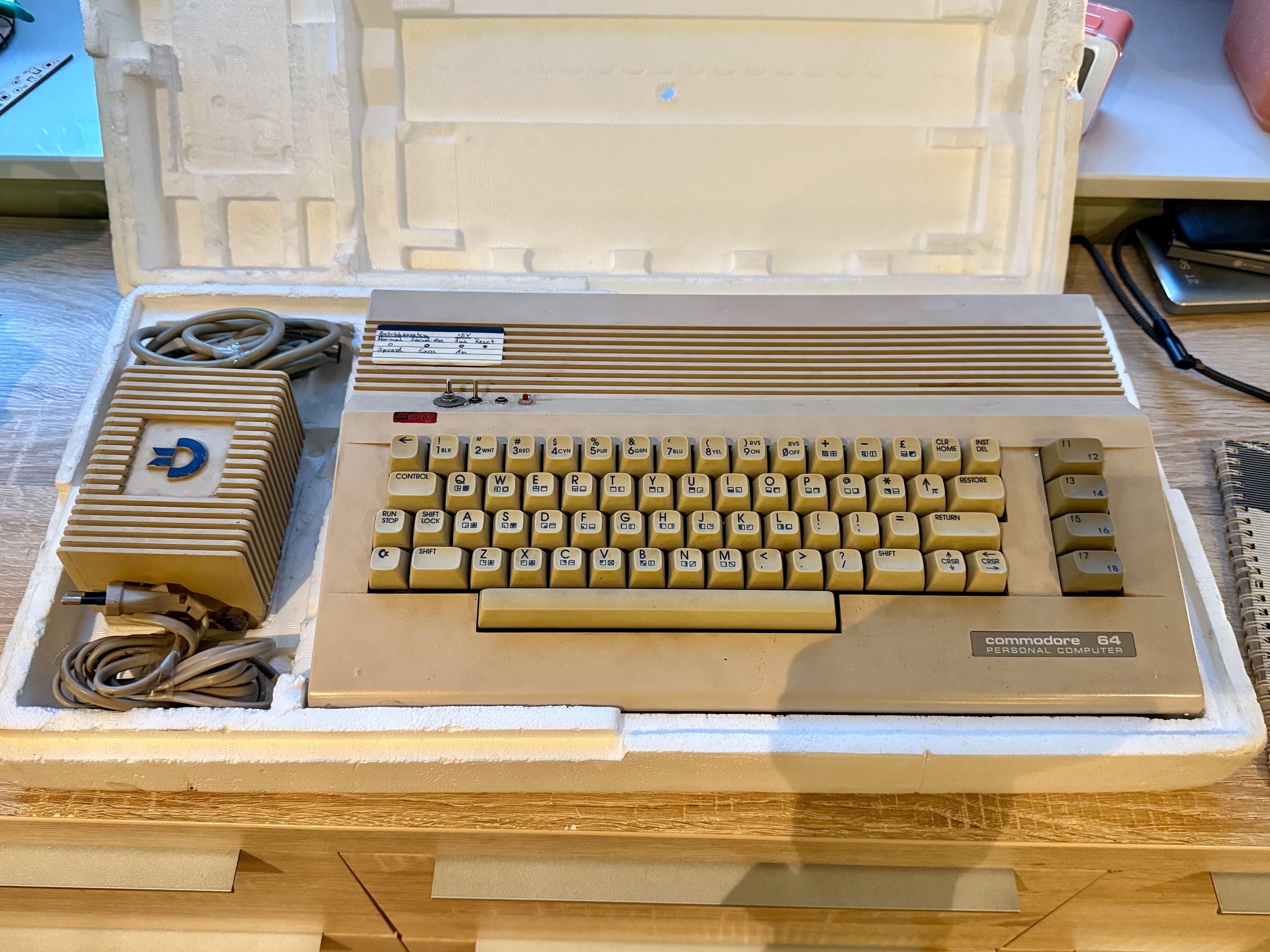 Ich habe von meinem Onkel einen C64 bekommen. Klassischer Fall von Dachbodenfund. Der (sein) Sohn hatte ihn Anfang der 90er bekommen und mit dem Neffen (mir) damit gedaddelt. Irgendwann ist das Ding auf den Dachboden gewandert und für einige Jahrzehnte dort verblieben.