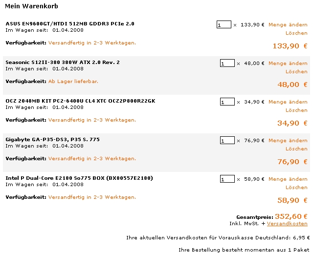 die restliche hardware kann von seinem anderm pc weitergebraucht weden