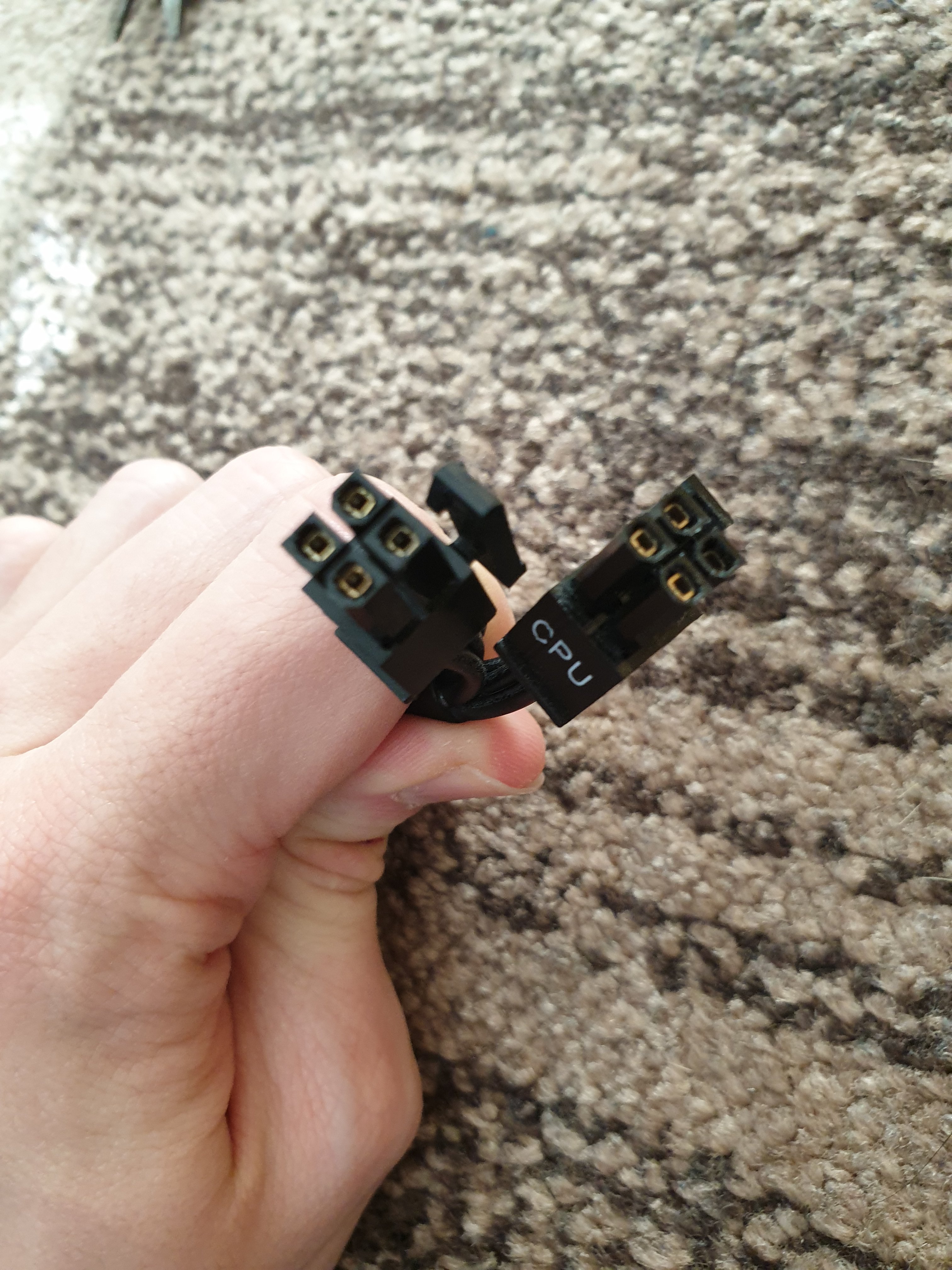 Heute ist das Cablemod Extension Kit reingekommen. Natürlich wollte ich es direkt anschließen, doch hatte meine Bedenken, da mir die 2 Stecker mit EPS im Namen Sorgen gemacht haben. Da es ja auch nicht gut ist, einfach irgendwie was einzustecken wollte ich zur Sicherheit fragen. Ich habe mal ein paar Fotos gemacht.. die ersten sollten klar sein, diese passen einwandfrei in die GPU wenn man diese abgleicht. Jedoch beim CPU Stecker habe ich bedenken. Mein Ryzen lief ganze Zeit nur auf 4pin. Wenn ich jetzt richtig wie Sherlock kombiniere, müsste ich das eine EPS? Kabel in der Mitte teilen (ja das ist möglich) und könnte es als ganz normalen 4pin Anschluss für die CPU nutzen oder?