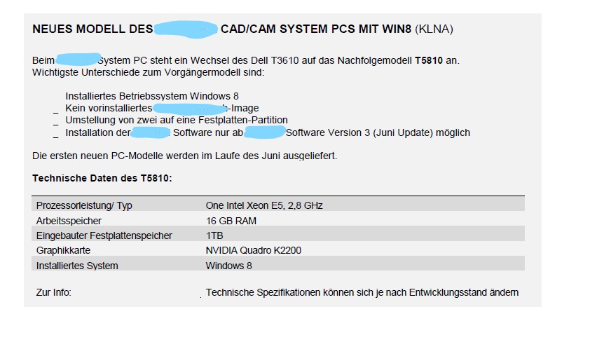 Was mich an diesem Gerät etwas stört ist Windows 8 und die CPU/GPU kann ich schlecht einordnen - auch im Vergleich zu denen, die Dell aktuell anbietet (CPU könnte nach der Taktrate ein Xeon E5-1603 v3 sein).