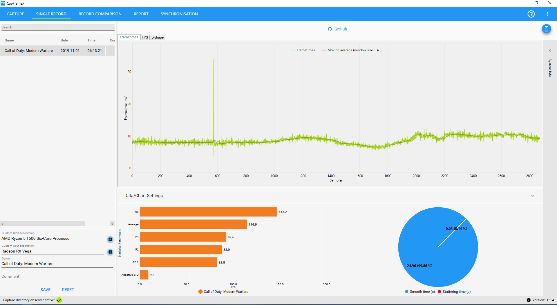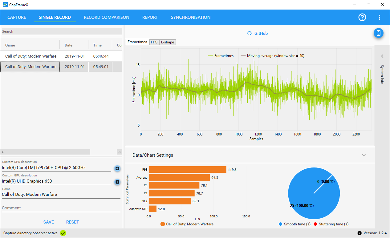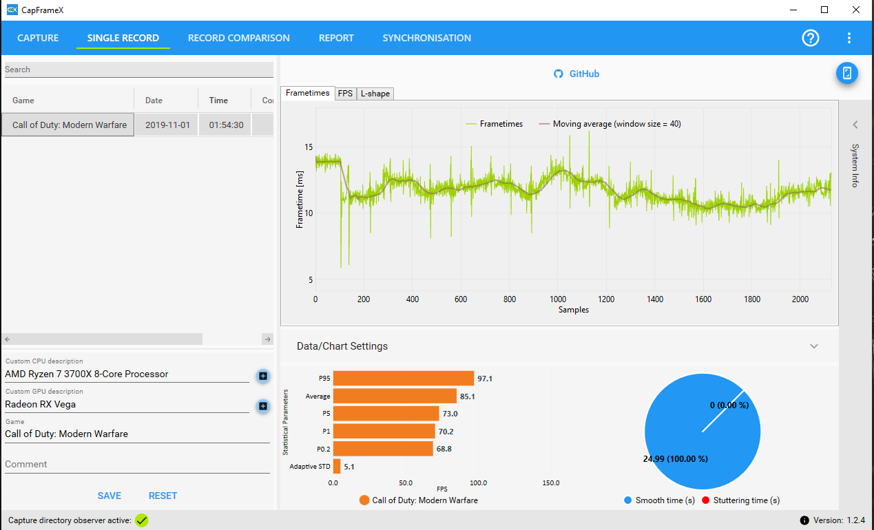Sieht man auch schön daran, dass deine Aufnahmezeit sehr unregelmäßig und nie genau 25s lang ist. Einer der Nachteile von OCAT^^