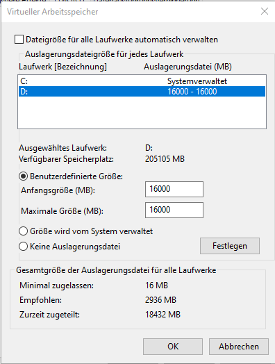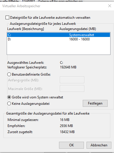 Es kommt die Fehlermeldung "Fataler Fehler / Paging File Error".
