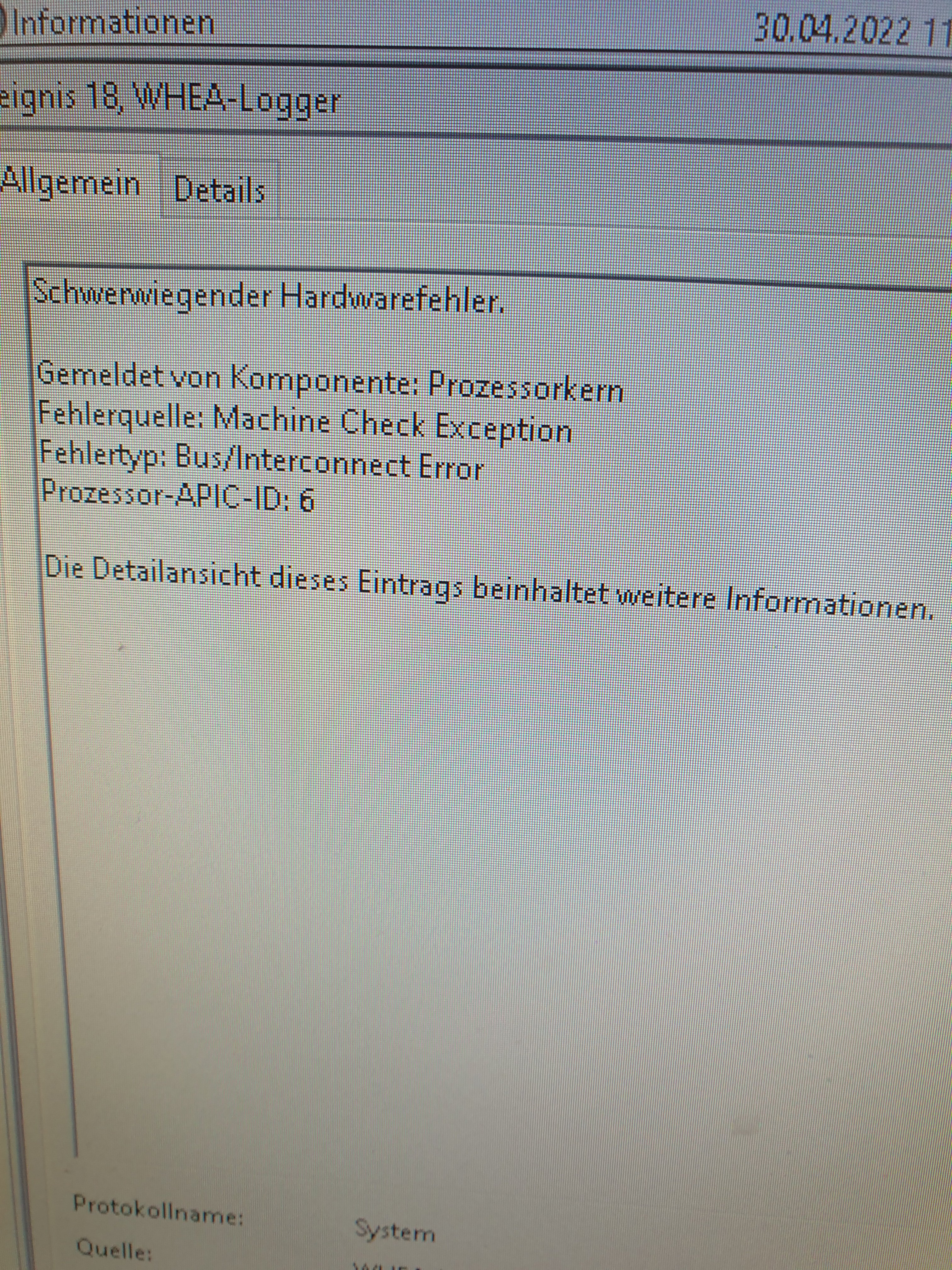 Edit: Zusätzlich noch die Systemereignisanzeige