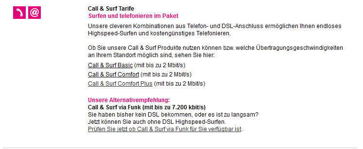 Hallo, da in unserem kleinen Dörfchen nicht mehr als 60-70kb/s möglich sind, suchte ich Alternativen. Ich ging zur Telekom und die meinten es gibt nur eine Möglickeit und das ist via Funk ( also LTE oder so ^^). Gesagt getan, neuen Vertrag unterschrieben, hab alles bekommen und die versprochenen 7,2Mbit/s ( mit einem Datenvolumen von 30 GB ) kamen auch an.