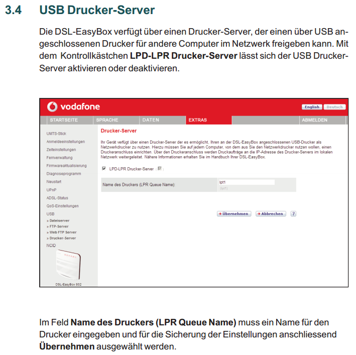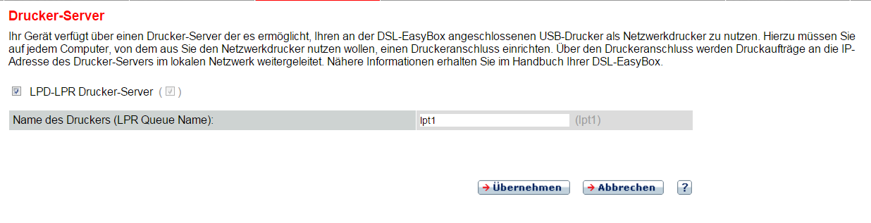 In der Easybox: verschiedene Druckernamen wurden auch bereits probiert.