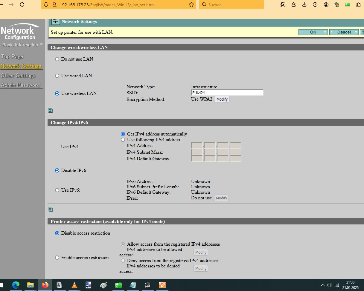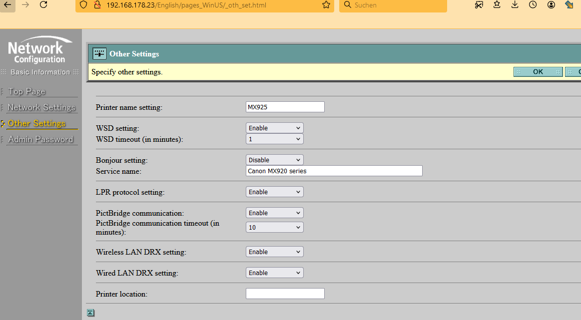 Heute, beim dritten Mal, eine weitere Woche später, war's wieder so, dass der Drucker den Scanner-Fehler Code 5,157,69 meldete - KEINE Verbindung trotz ping u. Webinterface OHNE Signalstärke und -Qualität. Bin wieder in die Einstellungen des Drucker rein, Hostname bestätigt und so weiter, aber auch nach über einer Stunde - und deaktivieren des Energiesparmodus, so dass die LAN-Verbindung zum 1220E von 100 Mbit auf 1 Gb/s ging - kein Erfolg.