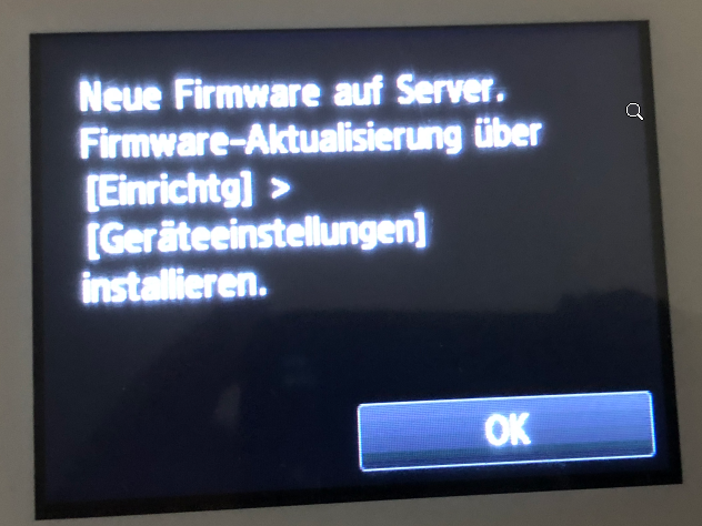 Hi Leute, durch eine Unachtsamkeit meinerseits hatte mein 10 Jahre alter Canon Pixma MG7550 heute Internetkontakt und hat auch sofort ein Firmwareupdate gezogen. Nun steht auf dem Display, wie ich das aktivieren soll. Ich will aber nicht, da ich noch in Erinnerung habe, dass danach die Tintenpatronen vom freien Markt nicht mehr funktionieren.