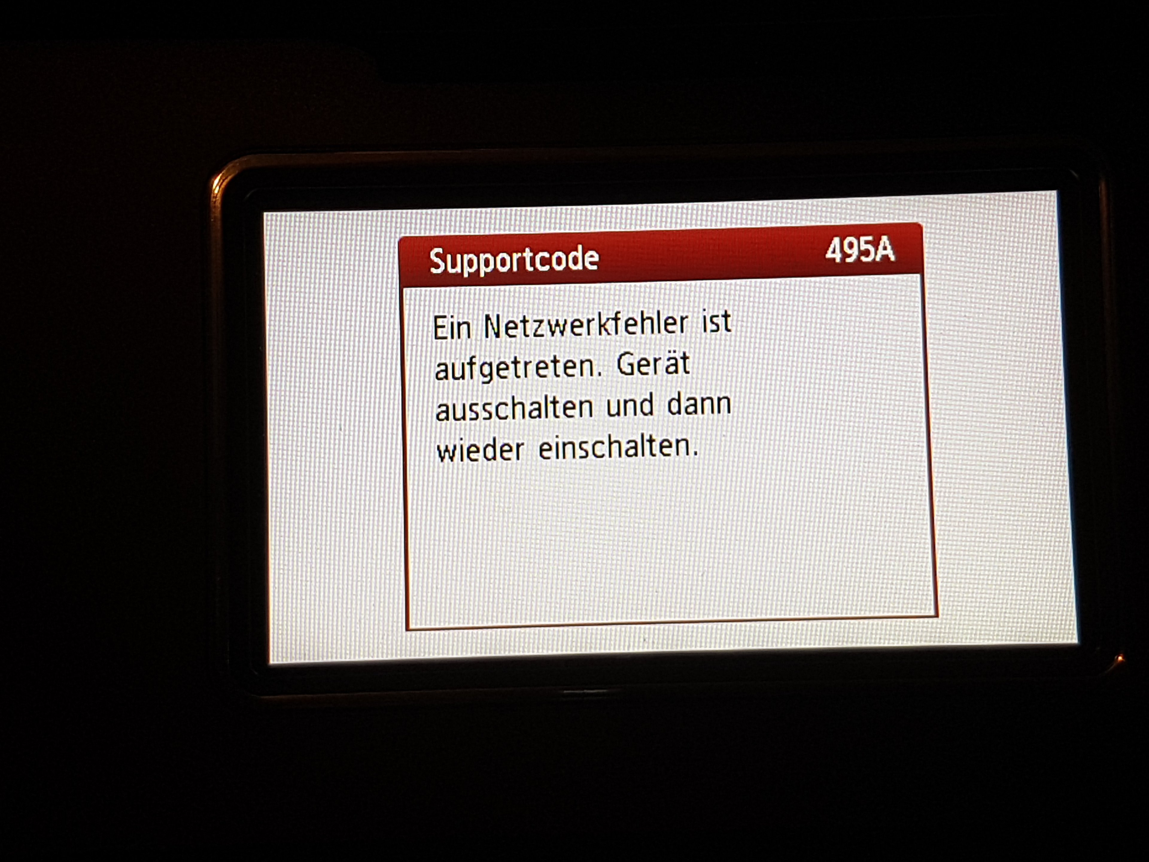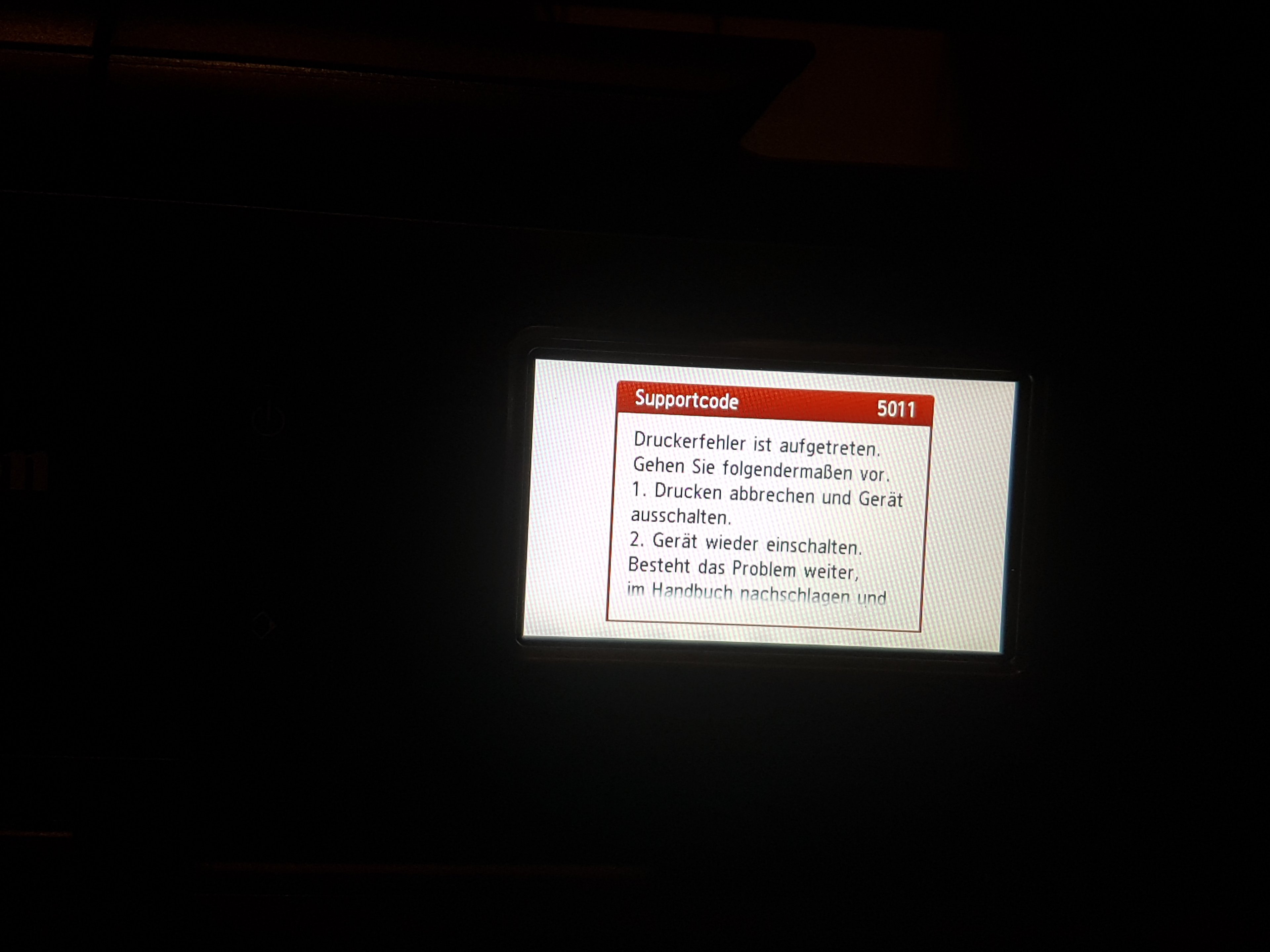 Update zu diesem Thema! Inzwischen war der Drucker zweimal in der Werkstatt. Zuletzt wegen Supportcode 495a. Ganze 2 Seiten konnte ich mit dem Gerät drucken. Vorgestern kam er zurück und zeigte gleich beim Stecken vom Netzkabel den Supportcode 5011. Ich habe mehrfach den Stecker gezogen wie es der Code sagt aber der Error bleibt! Ich bin es so leid!