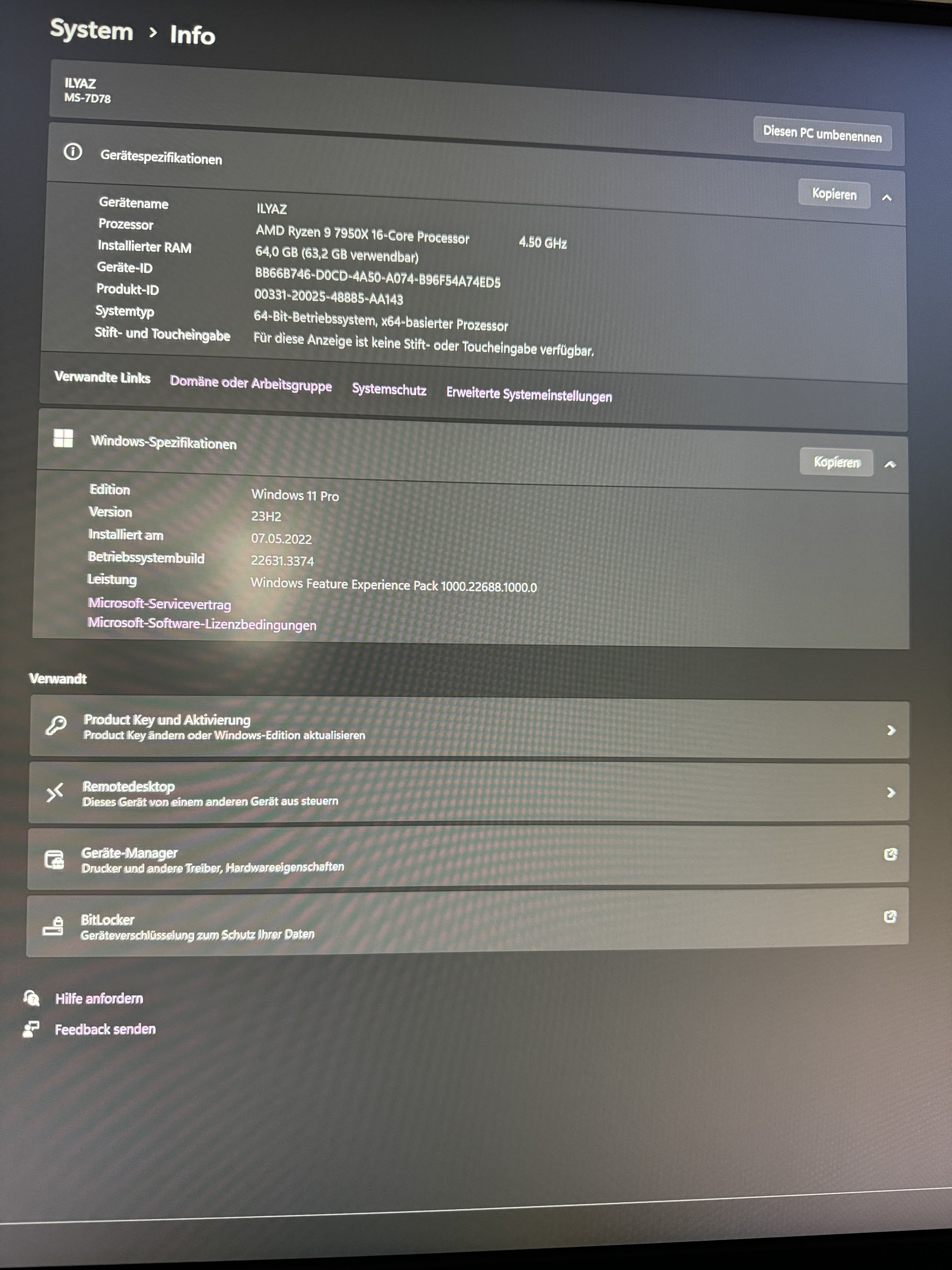 - Prozessor (CPU): AMD Ryzen 9 7950X