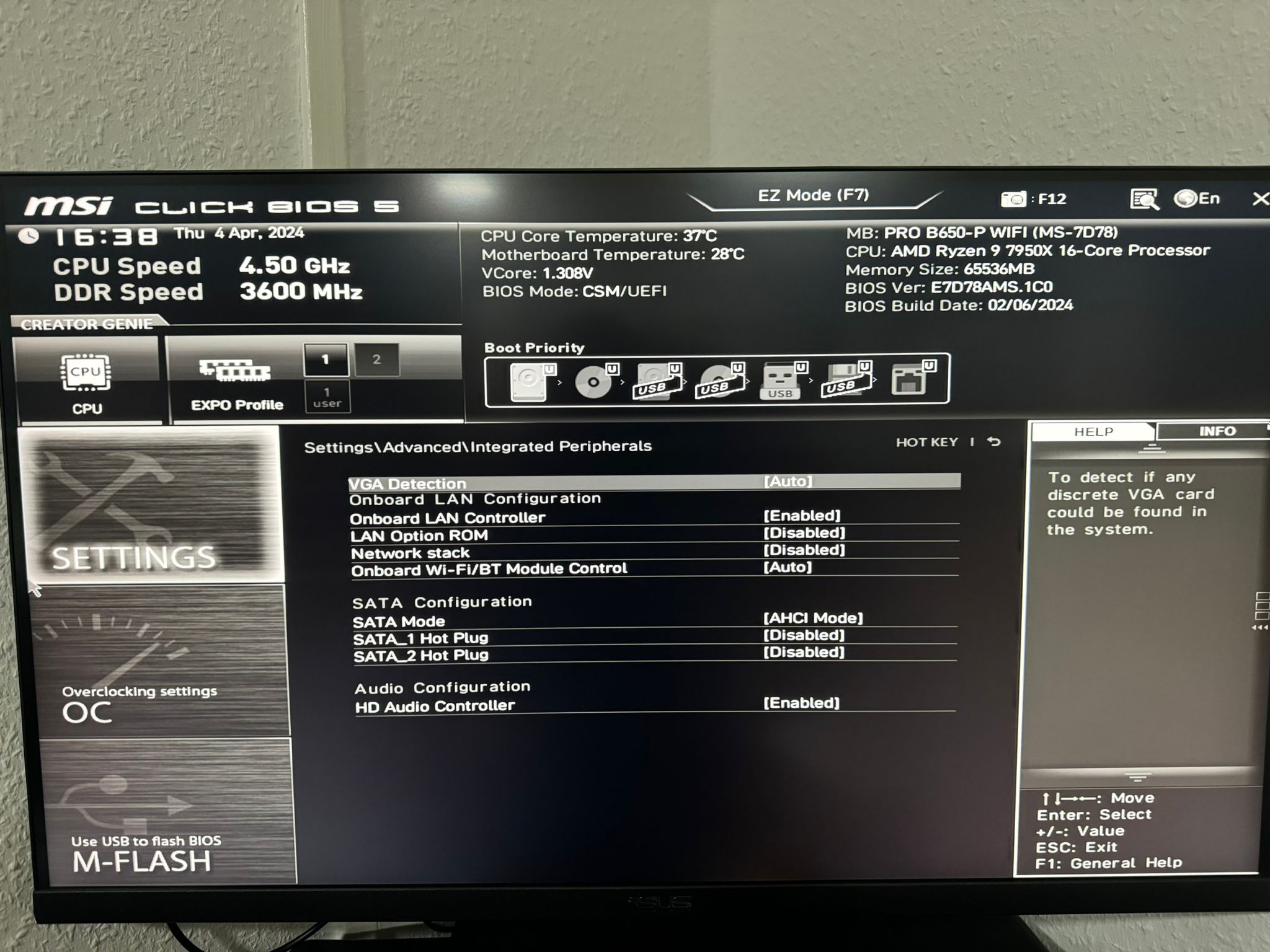 - Mainboard: MSI MPG B650 Carbon WiFi