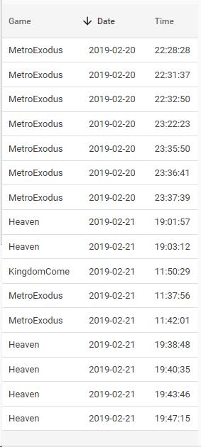 An-> Einträge werden erst nach Spiel, dann nach FPS sortiert