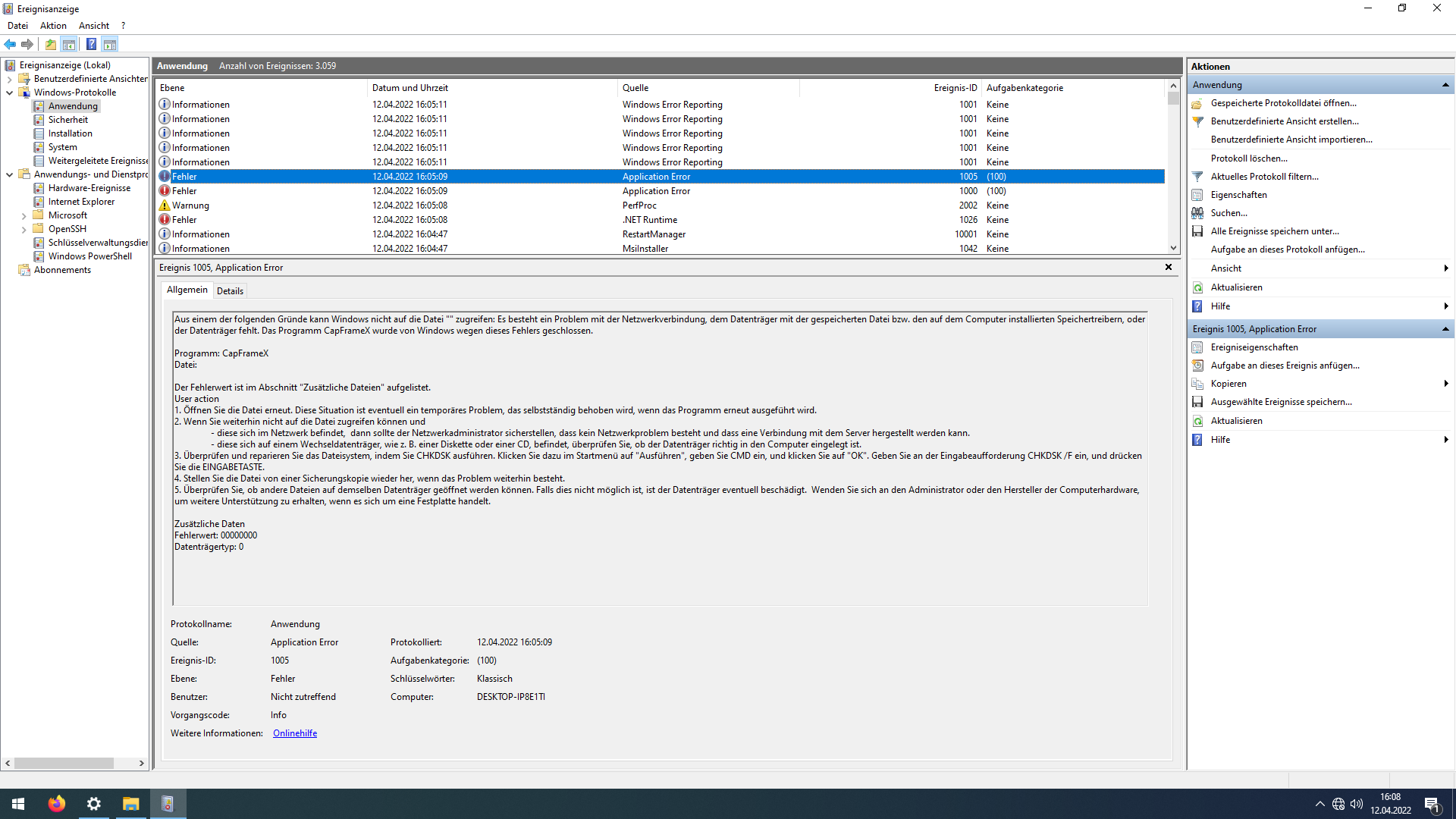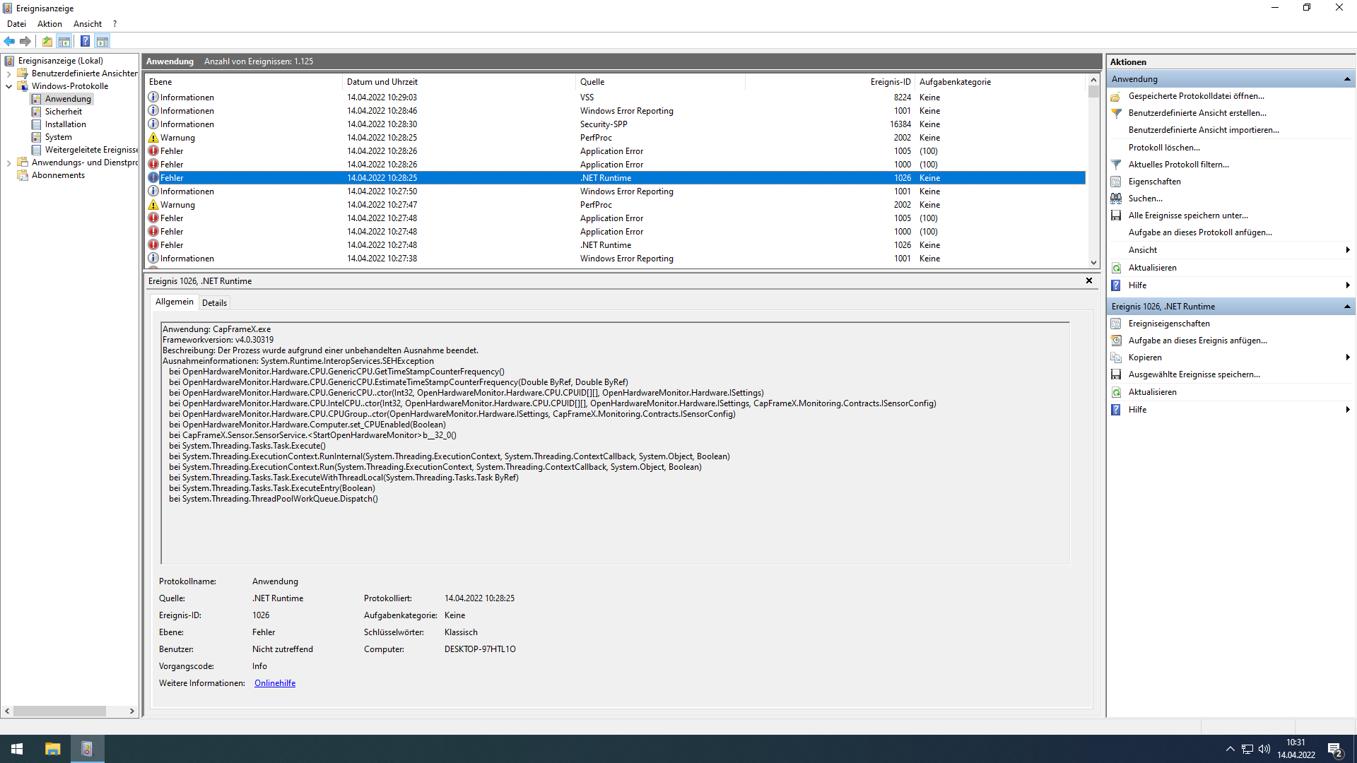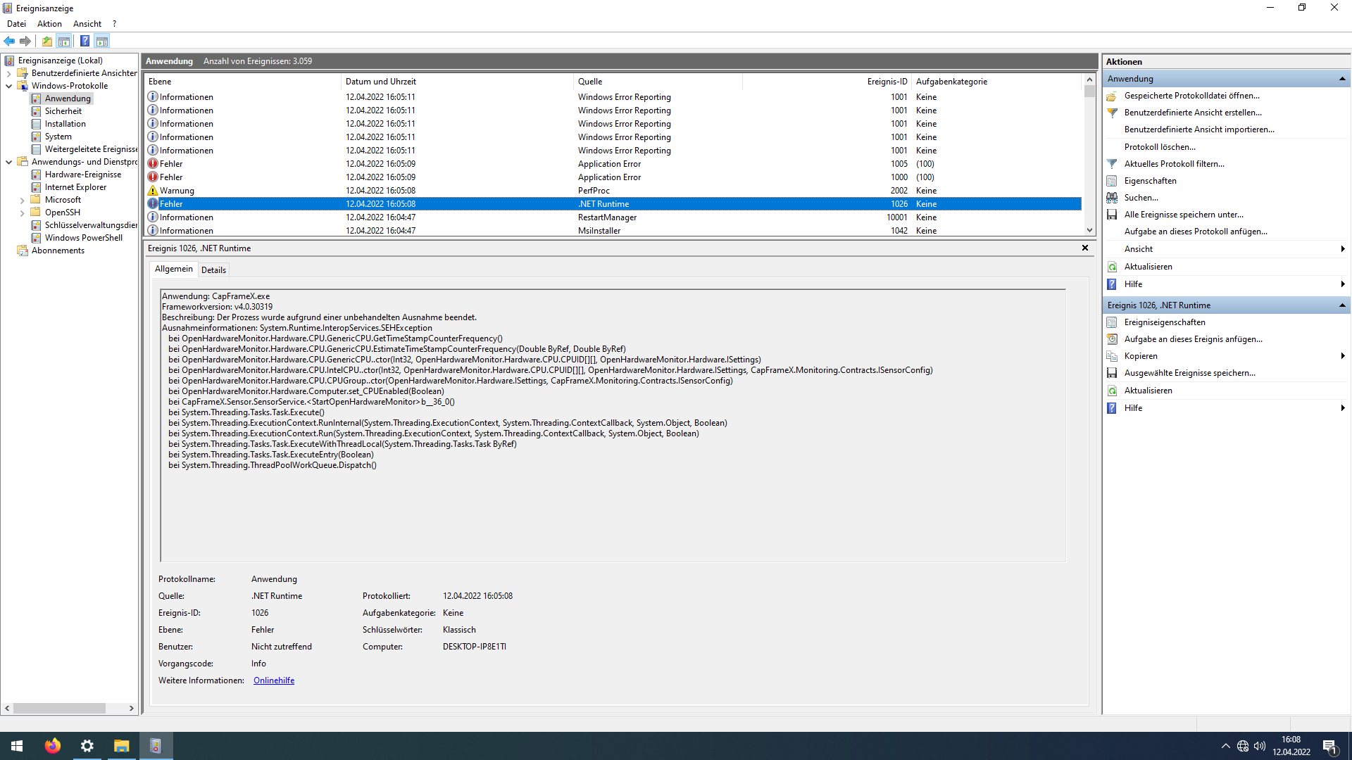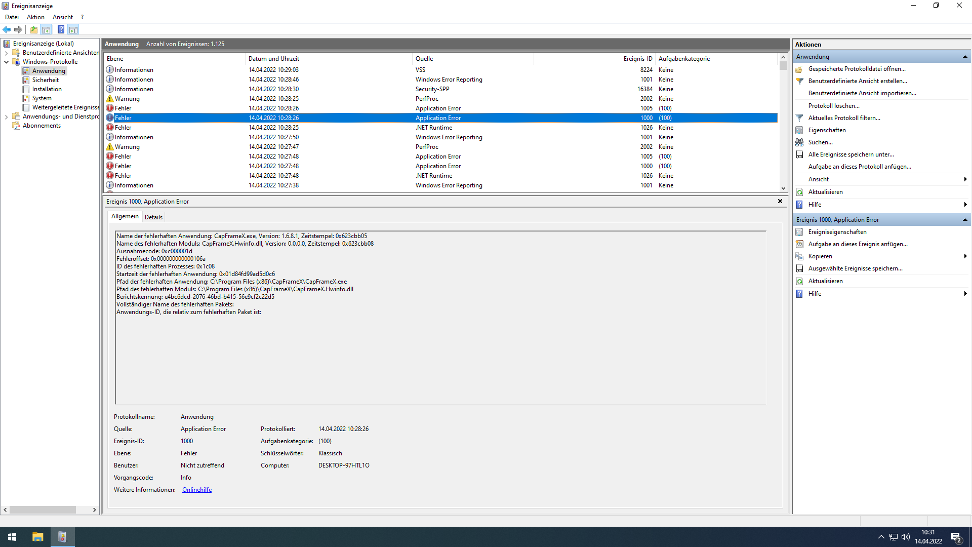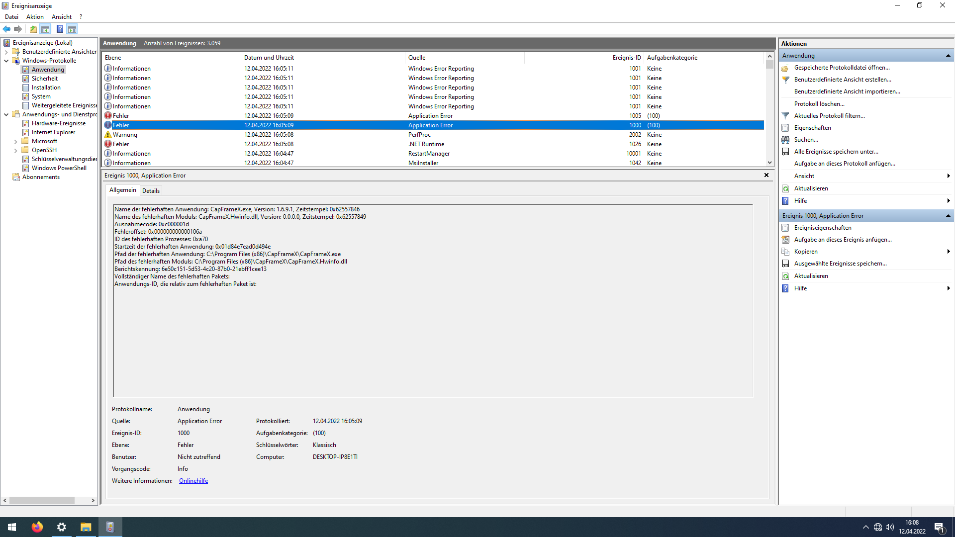 Jetzt stürzt CapFrameX auch mit dem Nvidia-Treiber ohne Fehlermeldung ab. o.O (Selbe Fehler in der Ereignisanzeige)
