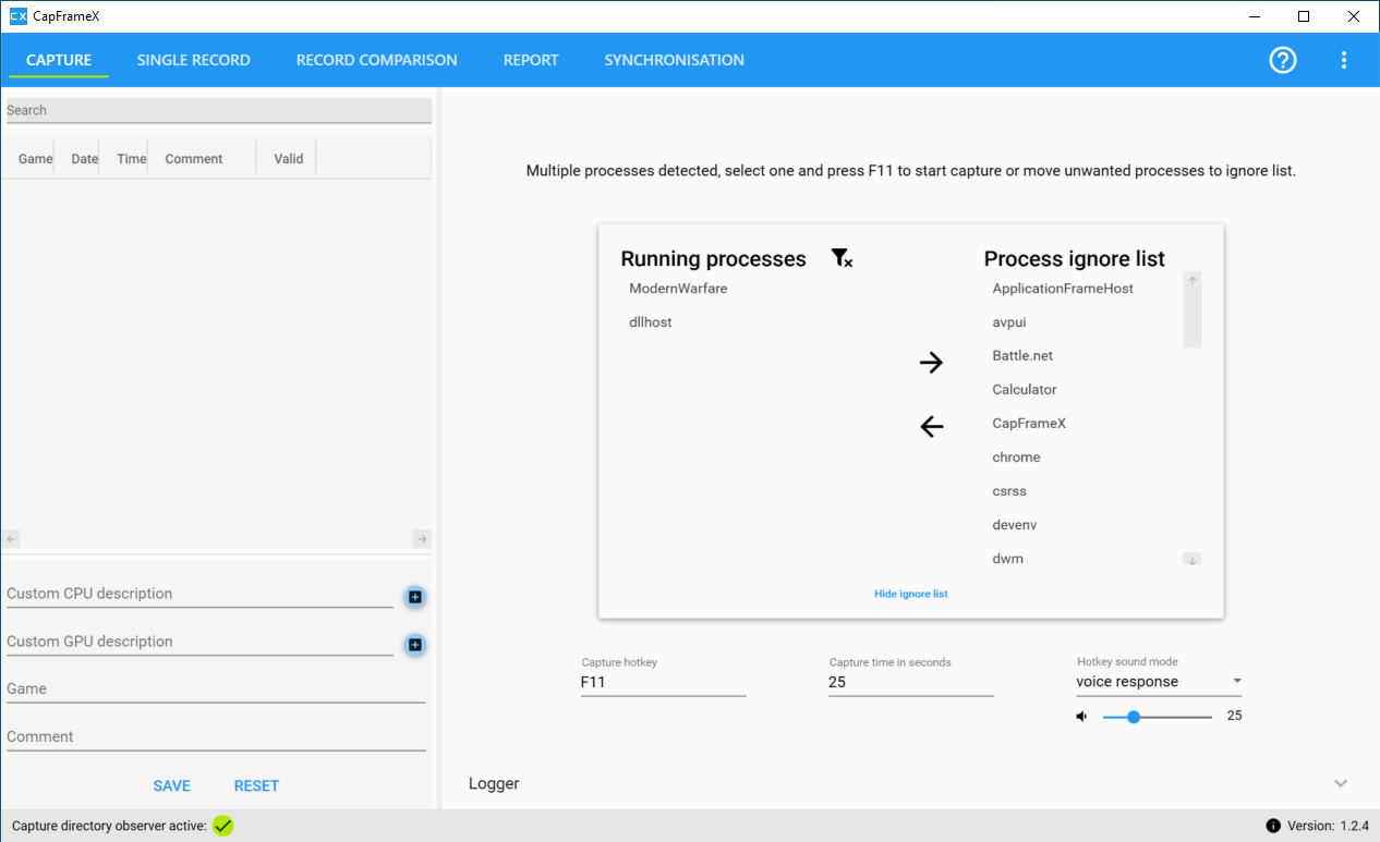 Hab die neue Version gerade ausgetauscht bei Github. Wenn man die neuste Ignore-Liste haben möchte, sollte man die aktuelle Datei unter C:\Users\"MyProfile"\Documents\CapFrameX\Ressources löschen. Wenn keine alte CX Installation vorhanden ist, dann braucht man das natürlich nicht machen.