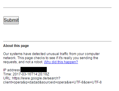 Das Einzige, was sich in letzter Zeit geändert hat, ist, dass vor etwa eineinhalb Wochen 1&1 an den Leitungen etwas gemacht haben. Dafür war für etwa 1 Stunde kein Internet da, aber seitdem hat sich unsere Geschwindigkeit verdoppelt. Ich weiß nicht, ob das in irgendeiner Art und Weise relevant ist, aber kurz danach fing es mit den Captchas an und sonst fällt mir nichts ein, was sich geändert hat (keine bewussten Downloads oder sonstige Änderungen am PC/Browser).