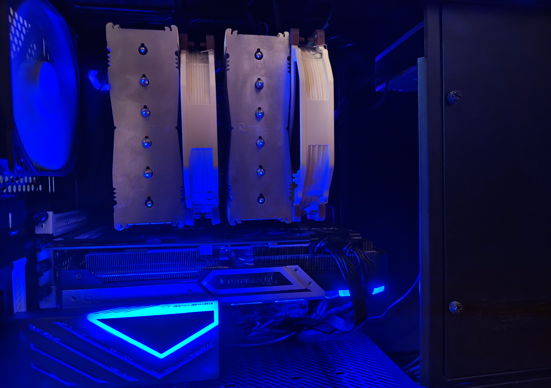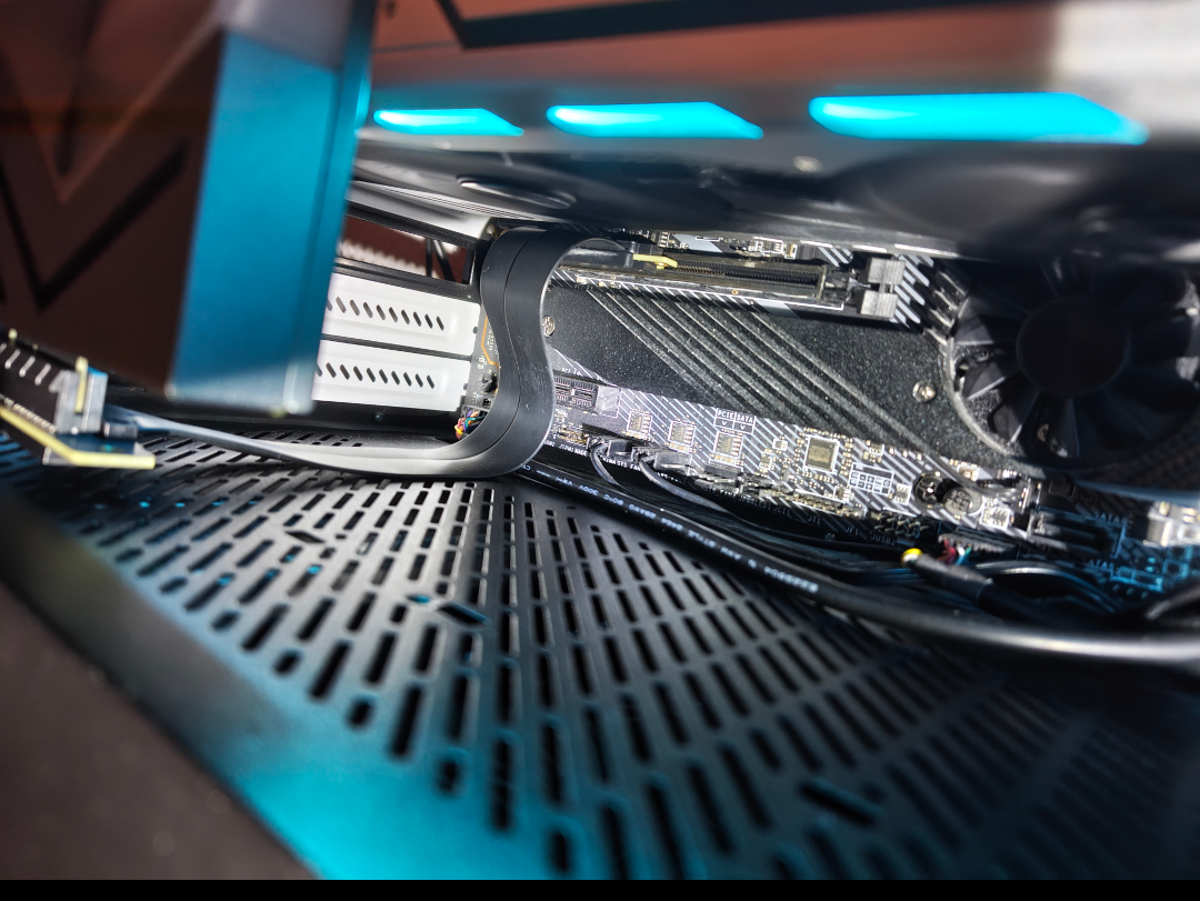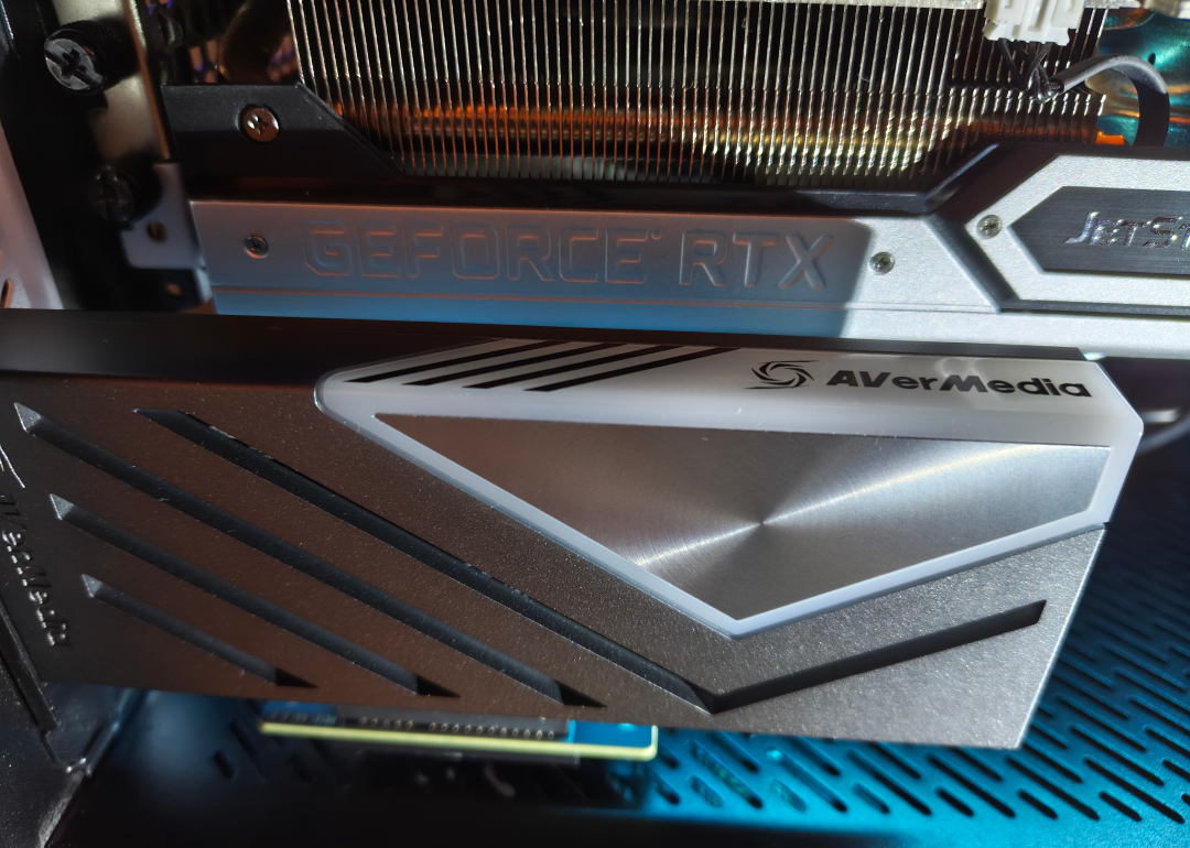 Die Capture-Card hat keinen Platz zur GPU. Liegt der Rechner horizontal, dreht sich zumindest de hintere GPU-Lüfter. Steht der Tower korrekt vertikal, hängt der GPU-Lüfter an der Capture Card.