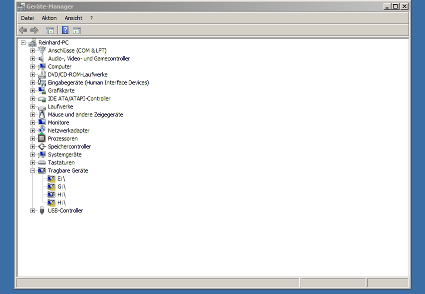 Danach erscheinen jetzt jedoch beim Cardreader gelbe Ausrufezeichen. Die Buchstaben waren wahrscheinlich dem Cardreader vorher zugeordnet.