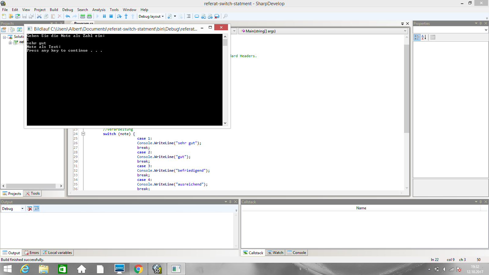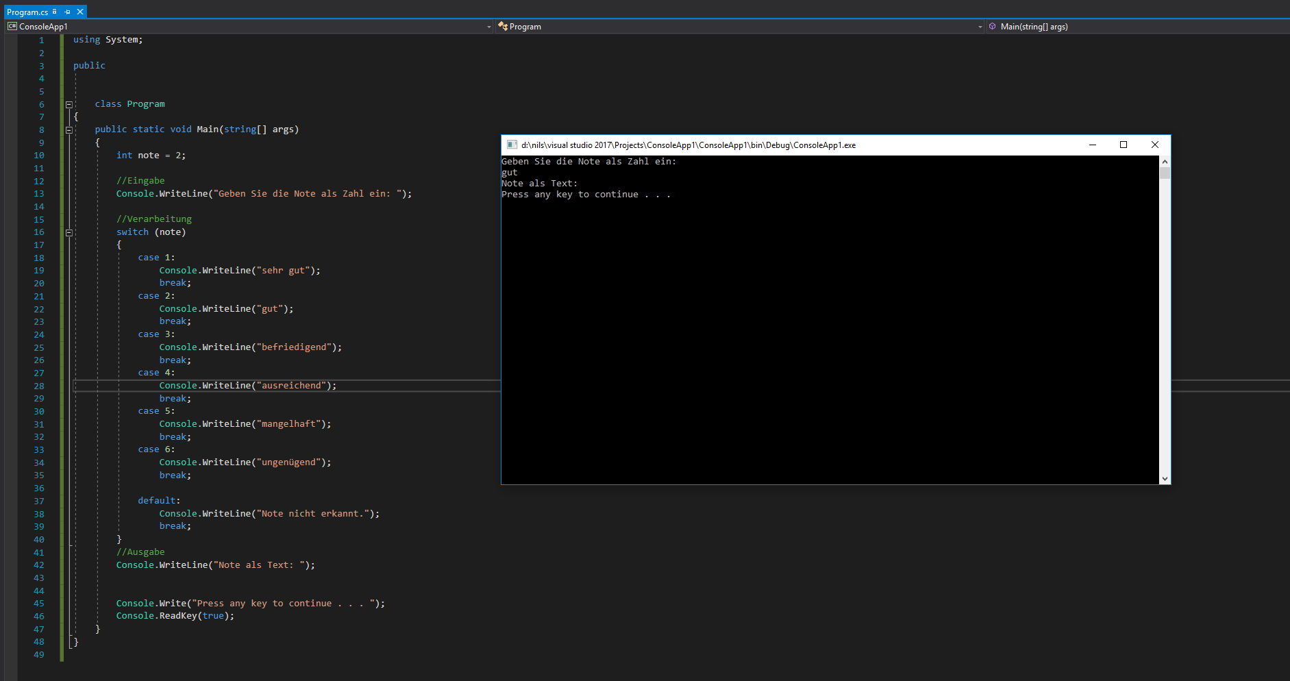 Console.WriteLine ("Geben Sie die Note als Zahl ein: ");