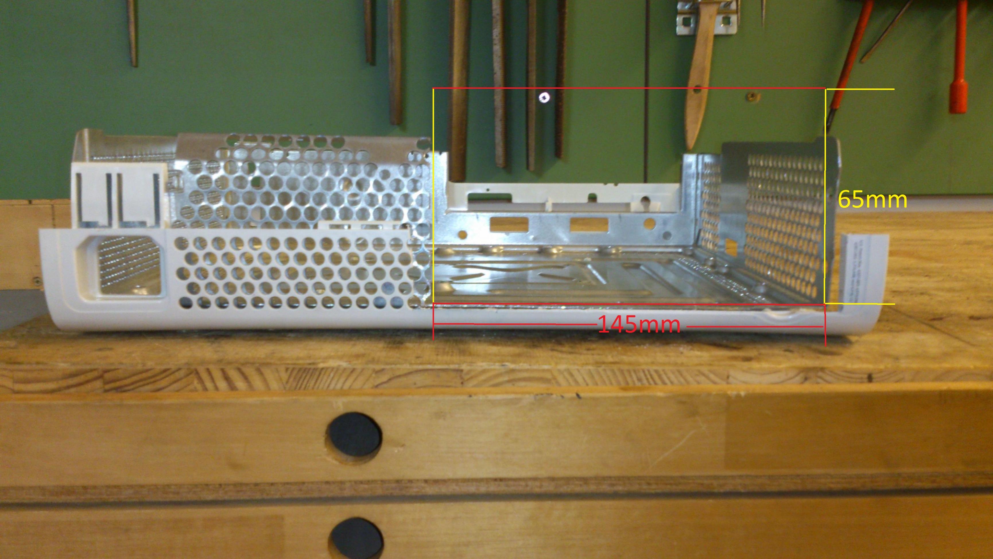 mit dem Stahlkäfig solltet ihr vorsichtig umgehen und an den gesägten Kanten mit einer Schlichfeile den Grat wegmachen. Hier werden die 5-10mm die zuvor raufgerechnet worden abgezogen, als Bezugskante dient bei mir die rechte Kante des Stahlkäfigs. Zum Schutz der Elektronik solltet ihr Kantenschutz an den gesägten Kanten verwenden!