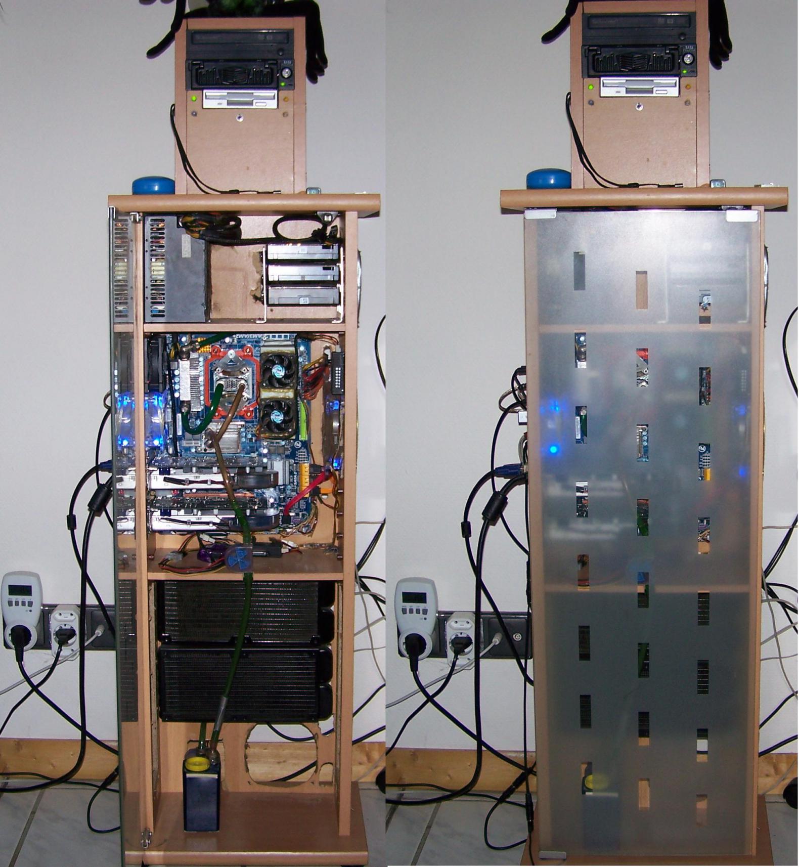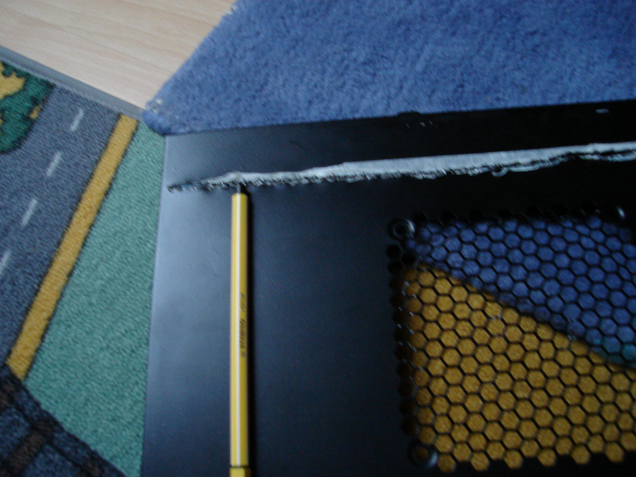 Naja wenn das Plexiglas sauber geschnitten wurde, also gelasert oder wie auch immer, dann dürfte das optisch nicht so stören wenn die Scheibe außen wäre. Nur würde das nicht mit Nieten oder Schrauben an der Seite zur Gehäuserückwand passen, du würdest die Seite nicht mehr zugesteckt kriegen, also bliebe da erstmal nur kleben - und das sieht dann wieder unschön aus weil man das ja mit der Scheibe außen sehen würde. Hast du wahrscheinlich selbst schon bemerkt...