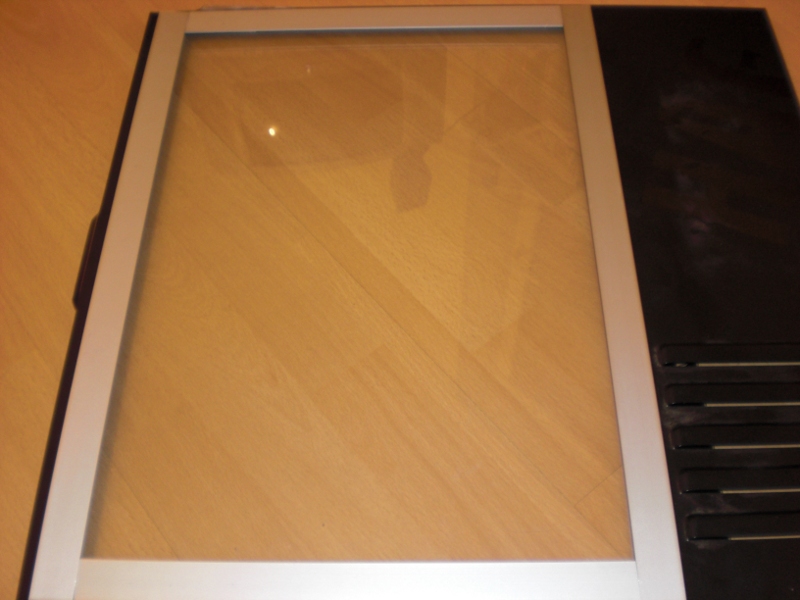 Eine andere Möglichkeit daß die Scheibe von innen angebracht werden kann, ohne Aluprofilrahmen etc. wäre, daß du einfach die Scheibe auf Stoß an die Rückseite setzt. Das bringt allerdings Probleme: Die Seitenwand und die Plexischeibe müßte an der Kante penibel grade geschnitten werden damit das keine unschöne, unsaubere Kante gibt. Außerdem könntest du die Scheibe an der Kante dann nicht befestigen.