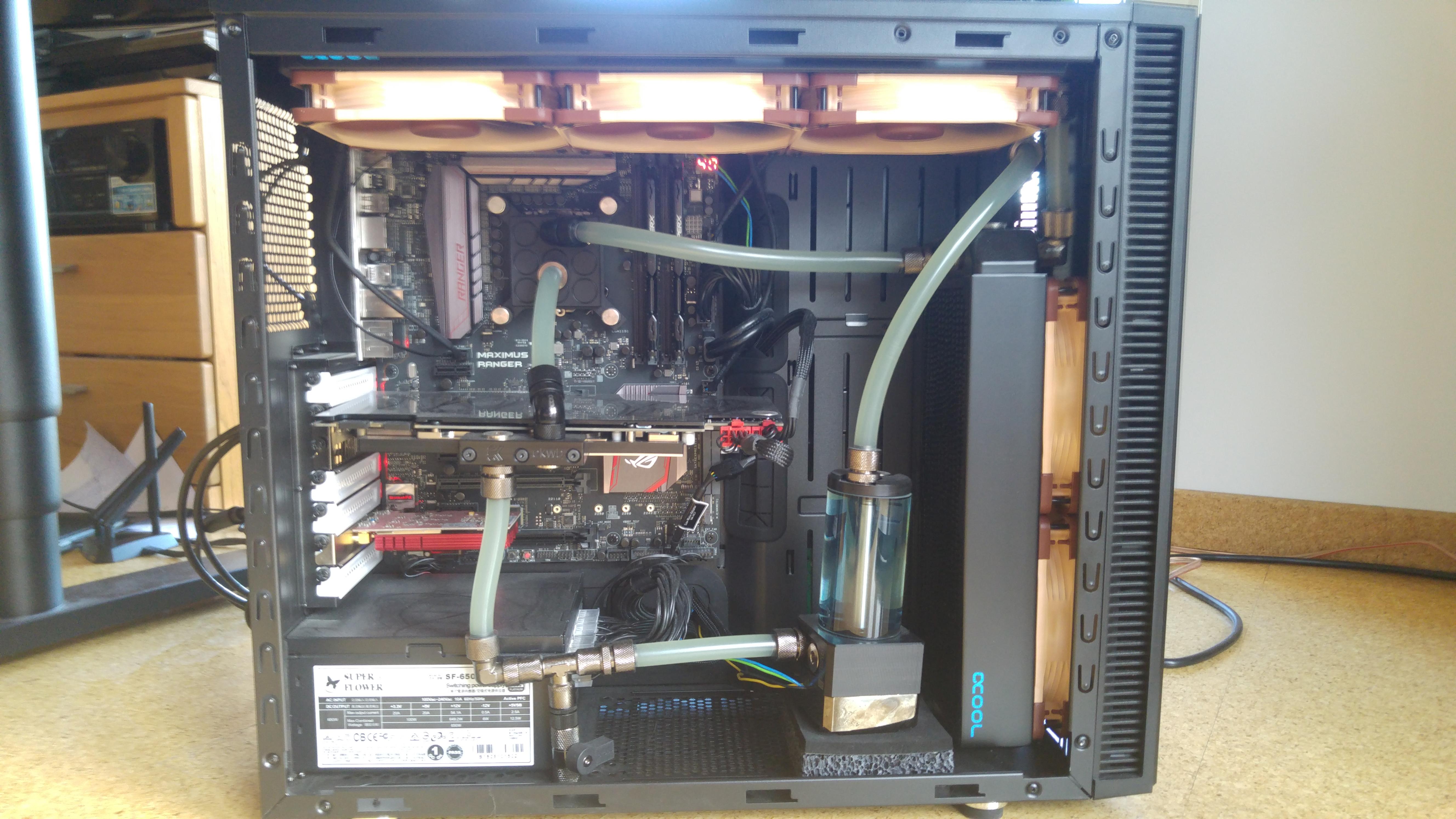 Vielleicht macht ja ein anderes Case mit mehr Platz für Kühlfläche mehr Sinn um die 700W abzuführen. Spitze wäre es, wenn auch die Fron des Cases transparent wäre, da ich überwiegend von vorn auf den Rechner schaue.