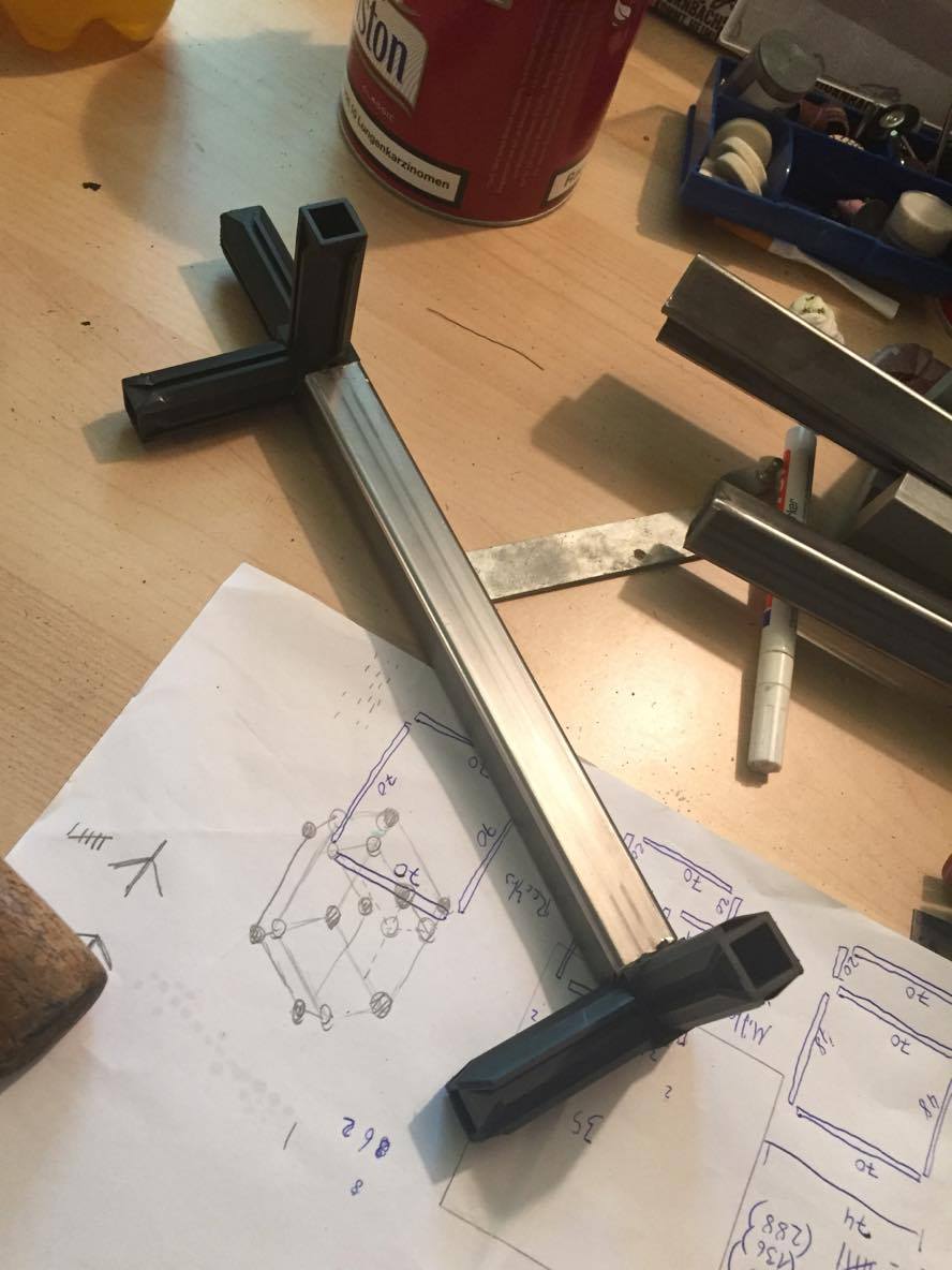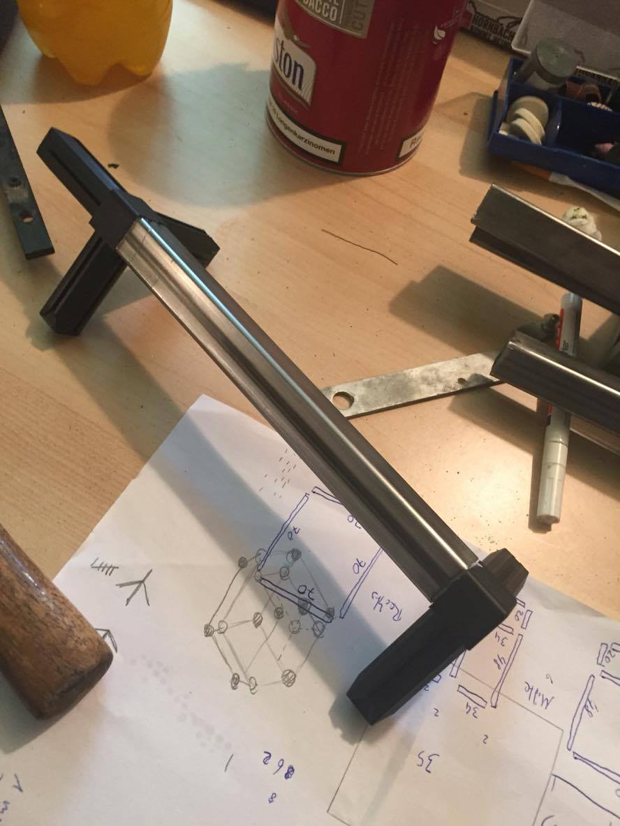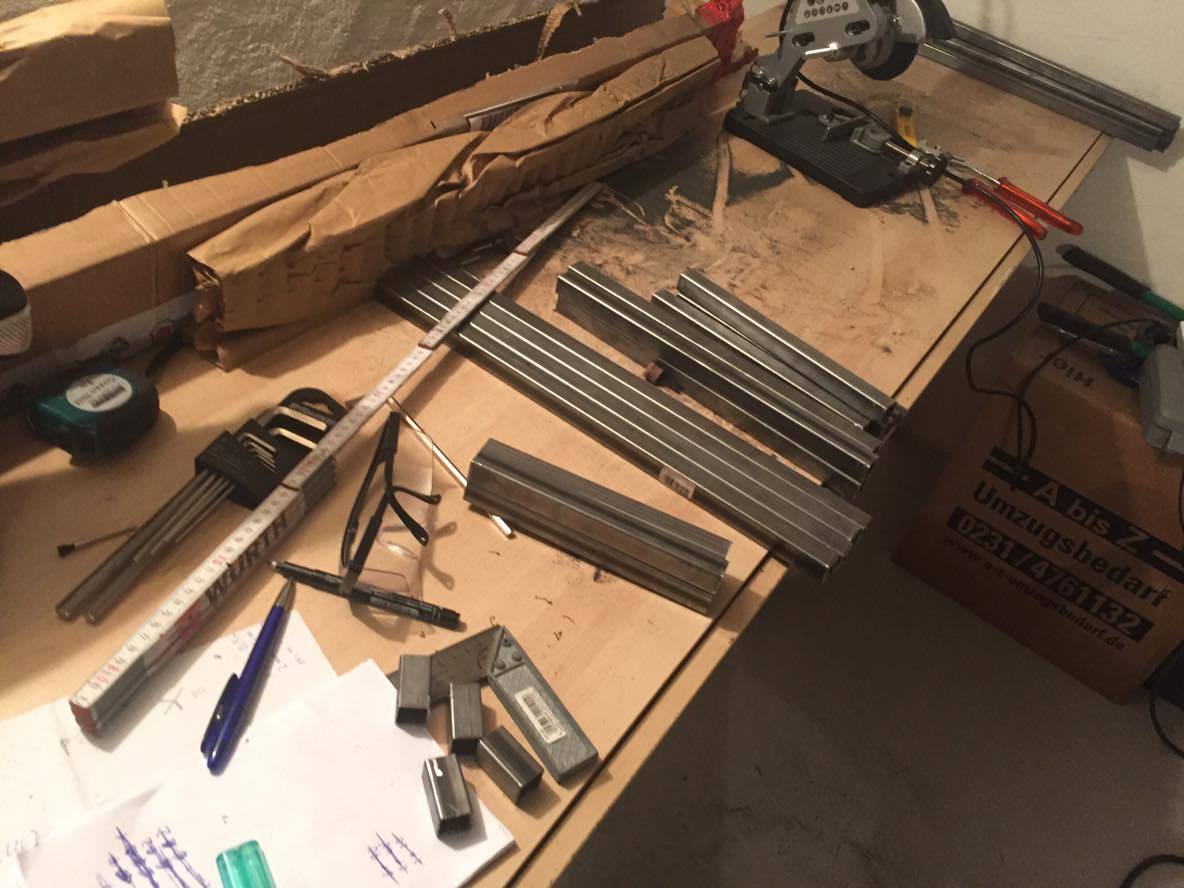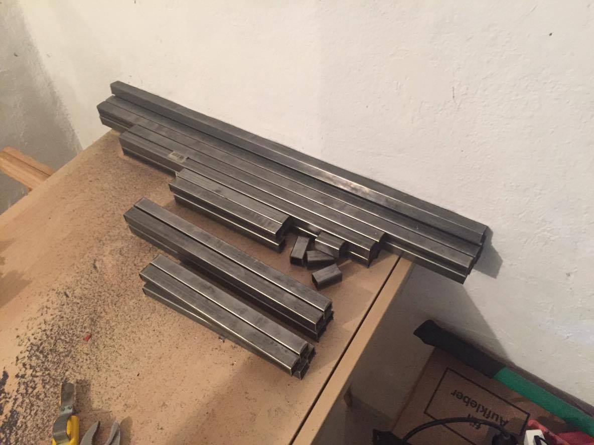 Das Grundgerüst des gehäuses wird aus Vierkantrohren und den dazugehören Verbindern gemacht,