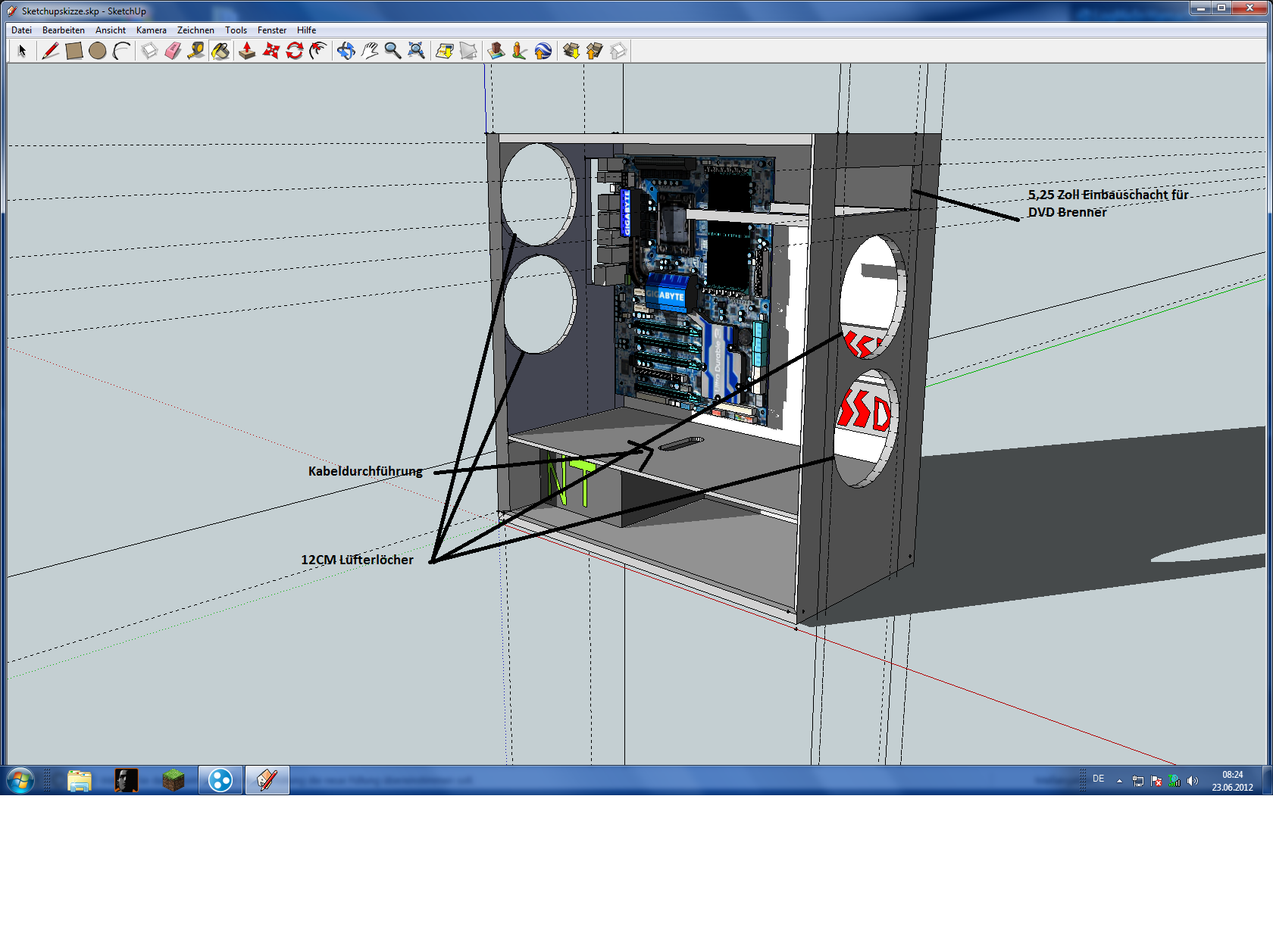 Im Prinzip nichts außergewöhnliches, nur ein für meine Bedürfnisse angepasster Tower aus Holz. ( Holz , weil ich damit besser umgehen kann als mit Metall und mehr Möglichkeiten in der Holzbearbeitung als mit Metall habe.)