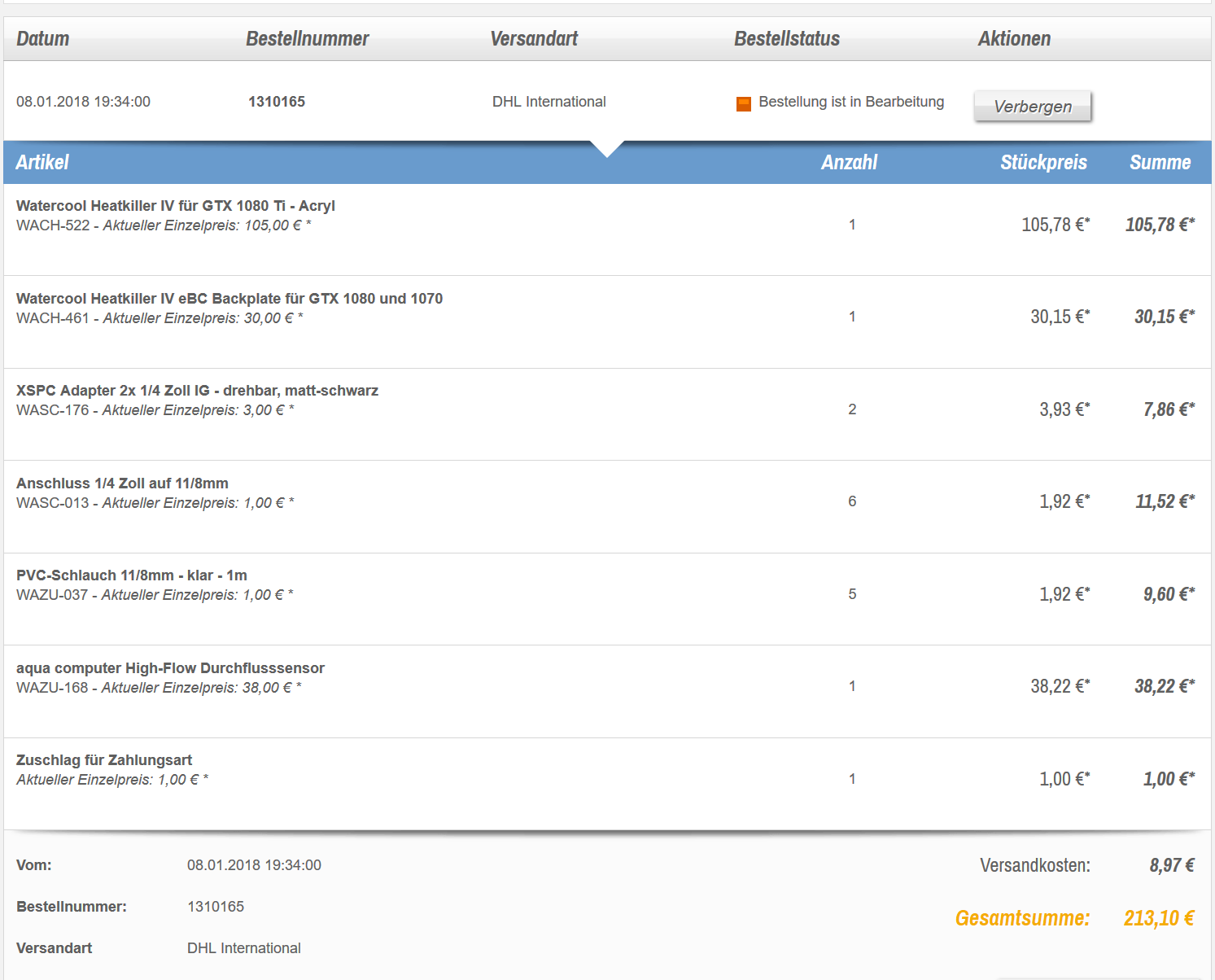 Hab am 08.01. Graka WAKÜ + Backplate + Schäuche usw bestellt.
