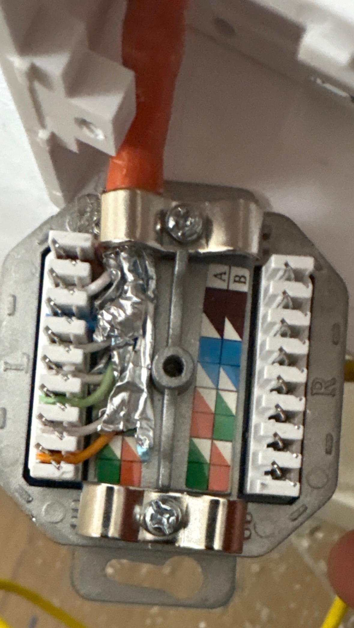 Alles ist nach Schema B verlegt und korrekt. Ich habe alle Stecker und Dosen selbst gemacht und gehe daher nicht mehr davon aus das der Fehler von der Dose kommt..